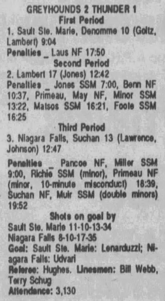 October 12 1989- Soo @ Niagara Falls (7-1 Soo)