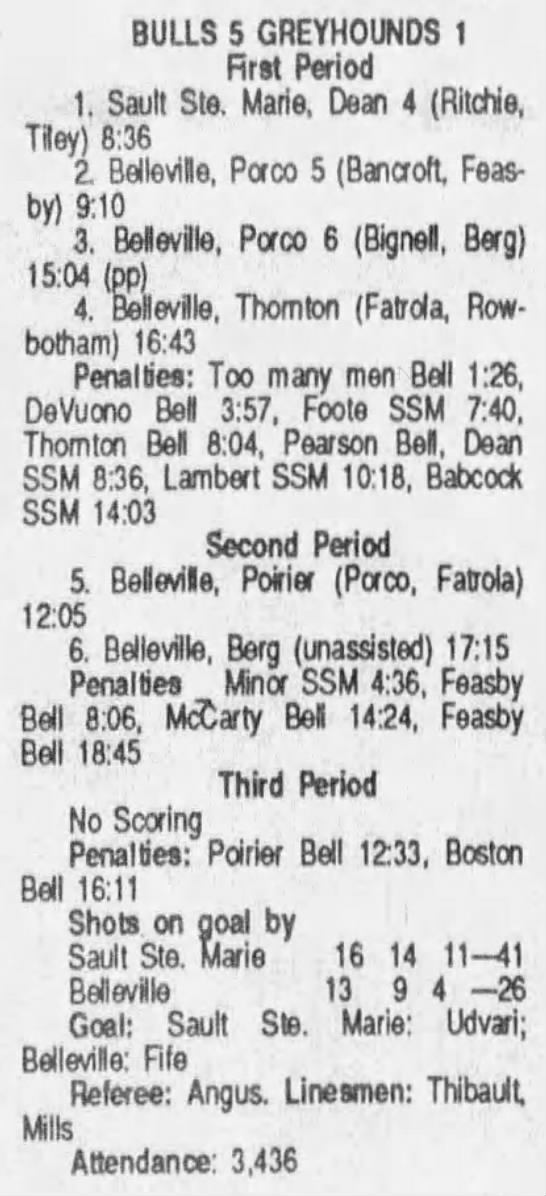 September 30 1989- Soo @ Belleville (3-1 Belleville)