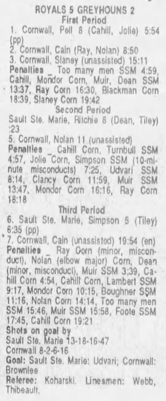 September 28 1989- Soo @ Cornwall (6-3 Cornwall)