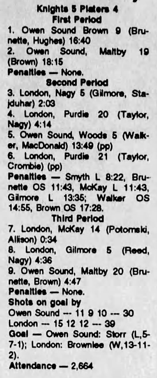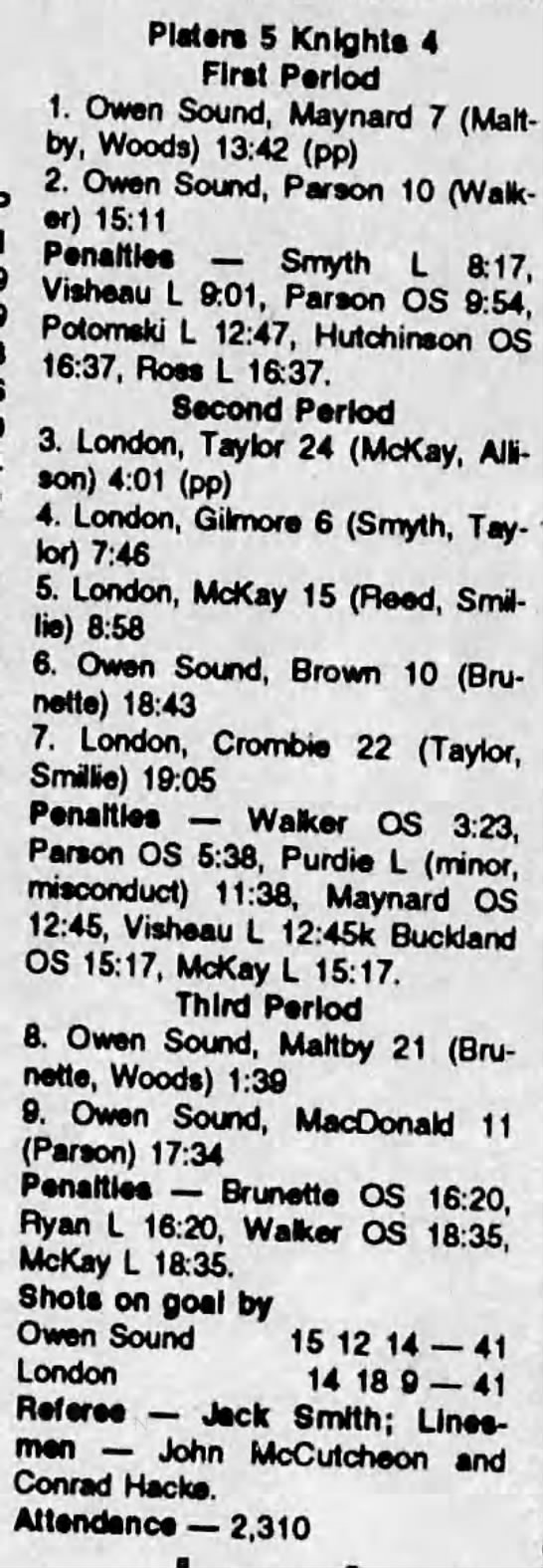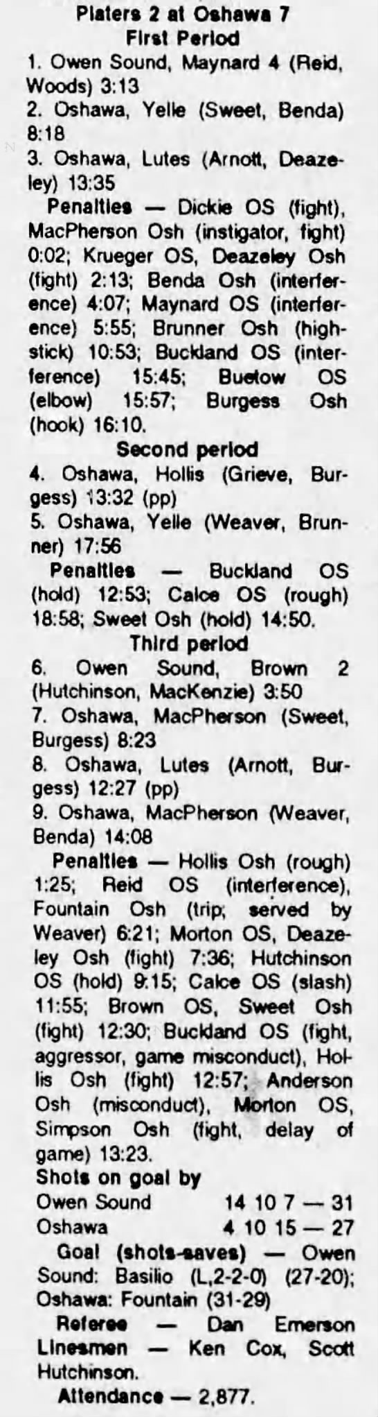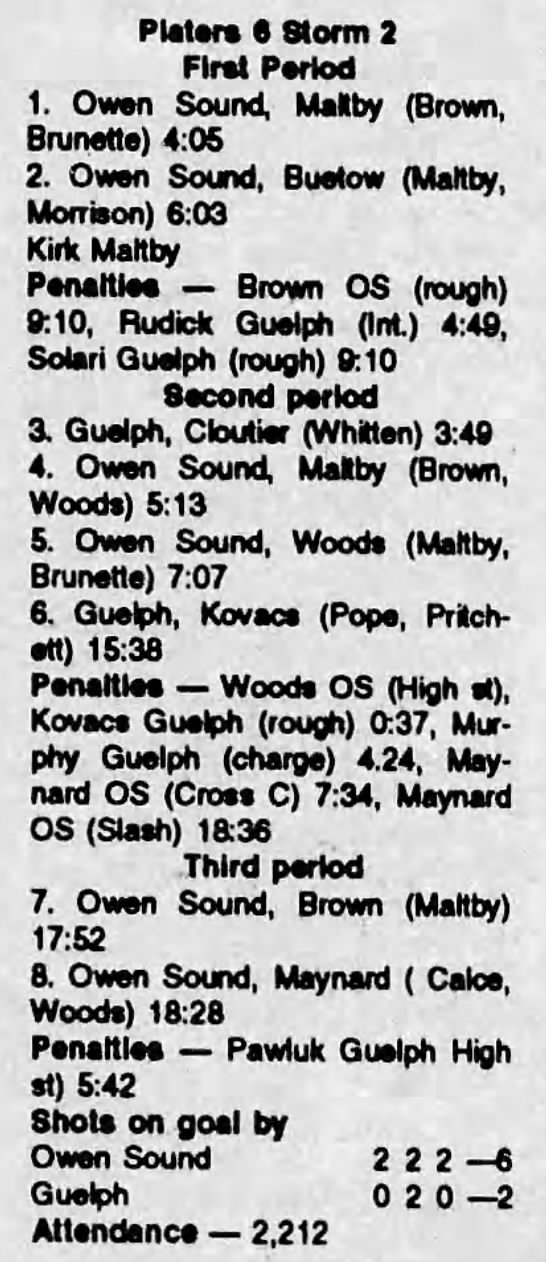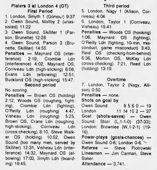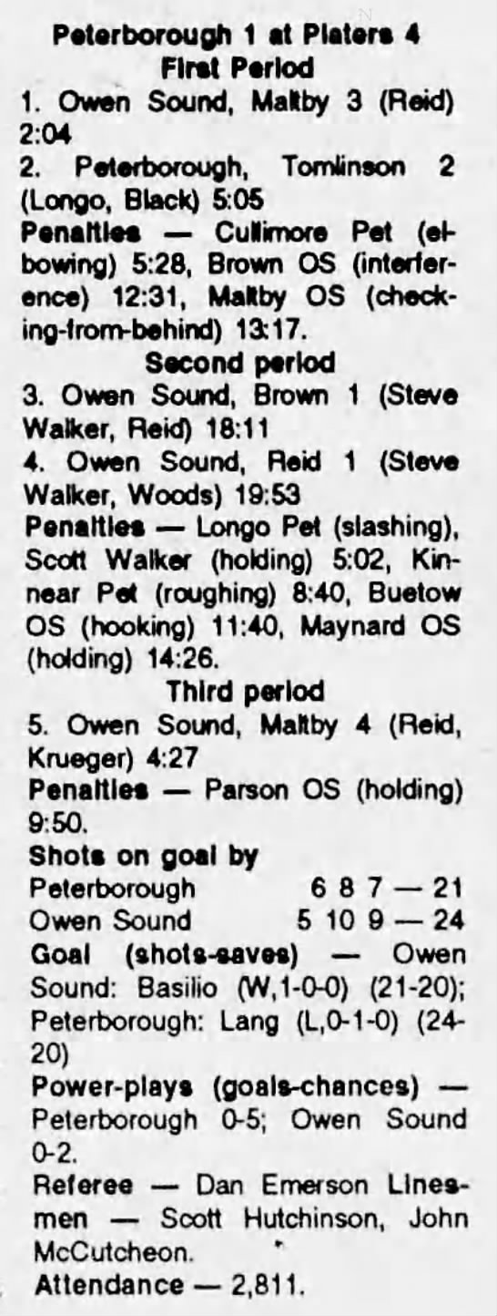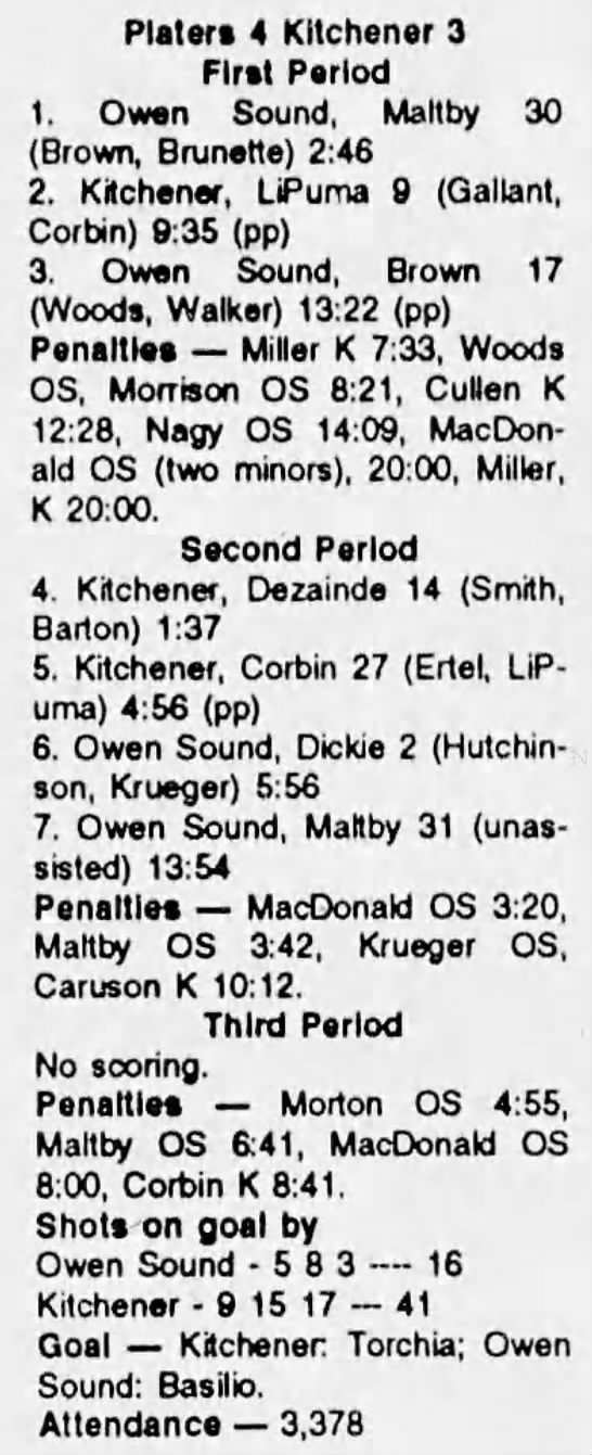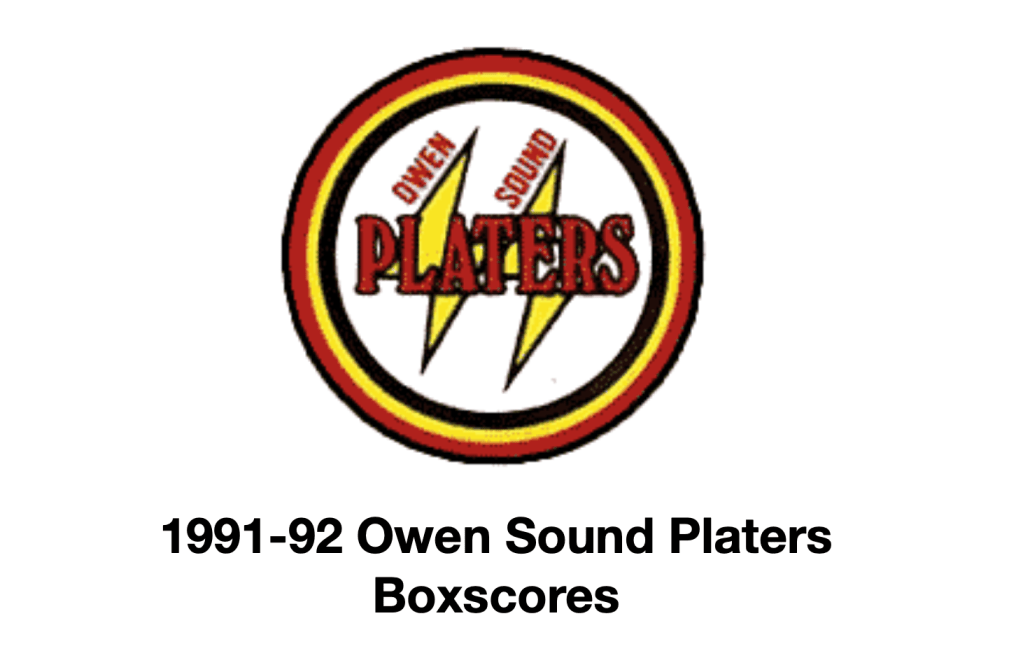 Here are the boxscores from the 1991-92 Owen Sound Platers season. Every boxscore from this season can be found here (71/71 boxscores). If you have any games from other seasons that are missing, please send them my way.