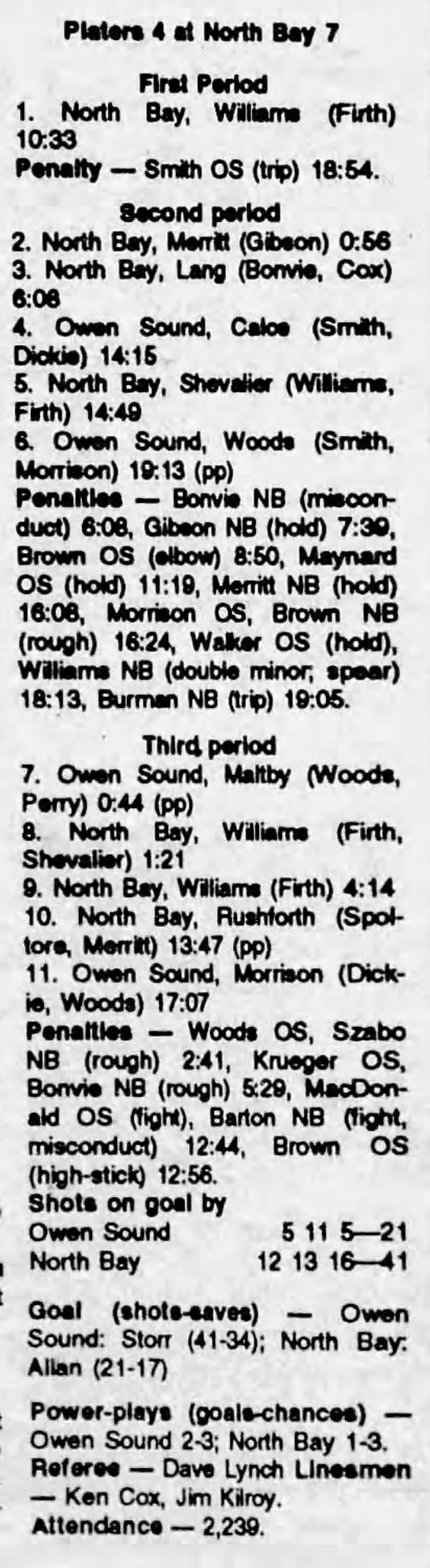 October 19 1991- North Bay @ Owen Sound