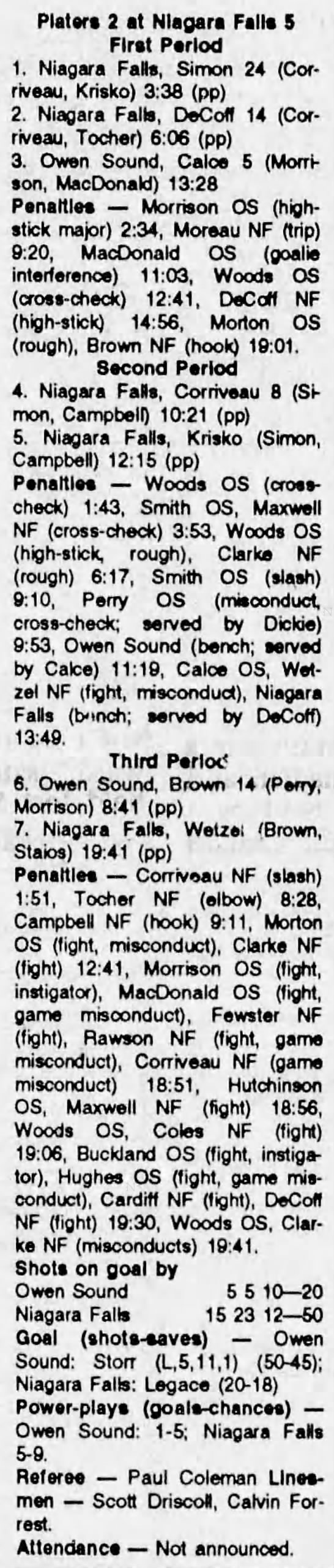 March 5 1992- Owen Sound @ Niagara Falls