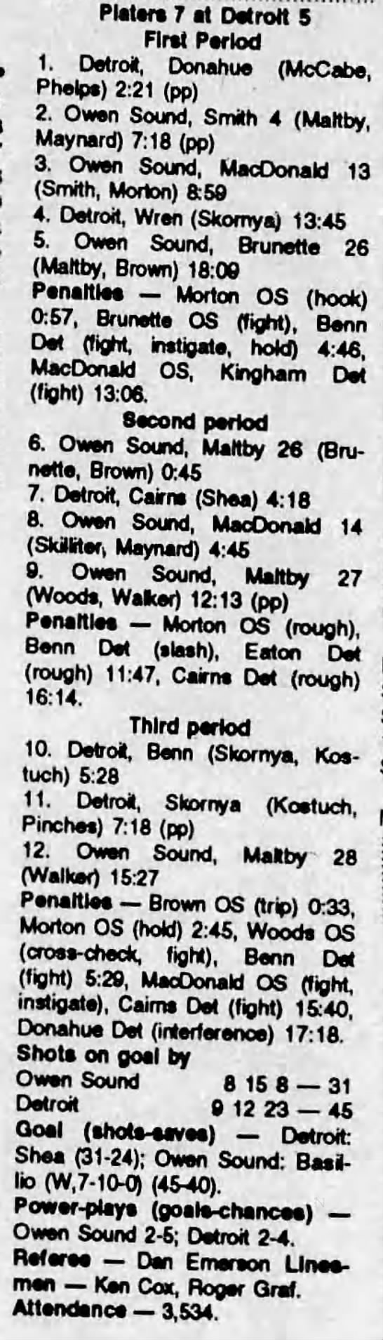March 1 1992- Owen Sound @ Detroit