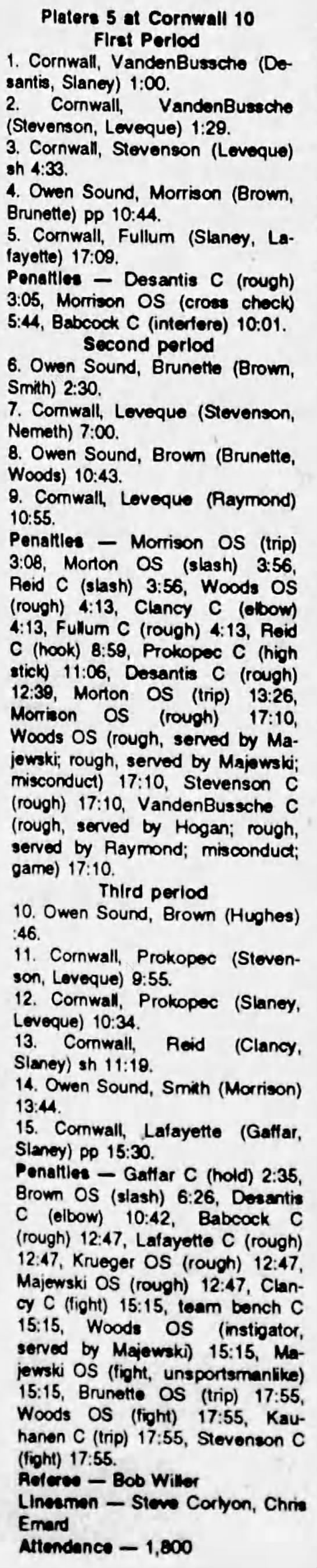 October 5 1991- Cornwall @ Owen Sound