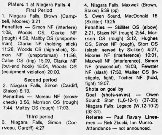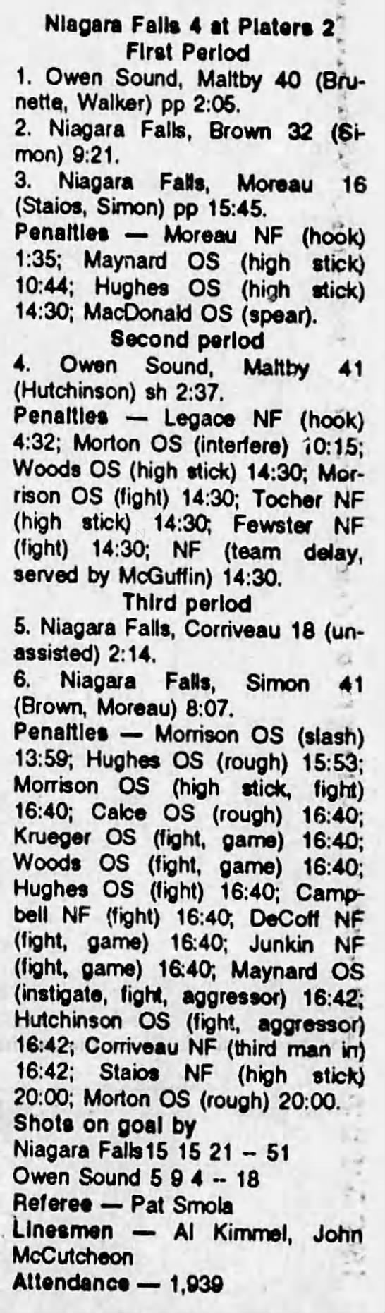 January 4 1992- Niagara Falls @ Owen Sound