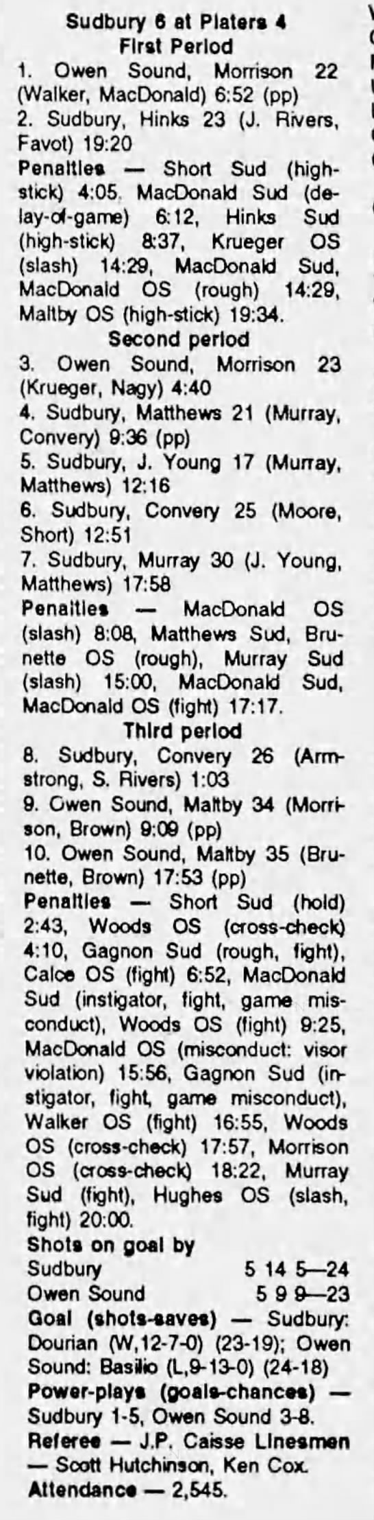 March 7 1992- Windsor @ Owen Sound