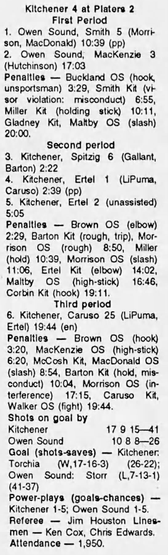 March 4 1992- Kitchener @ Owen Sound