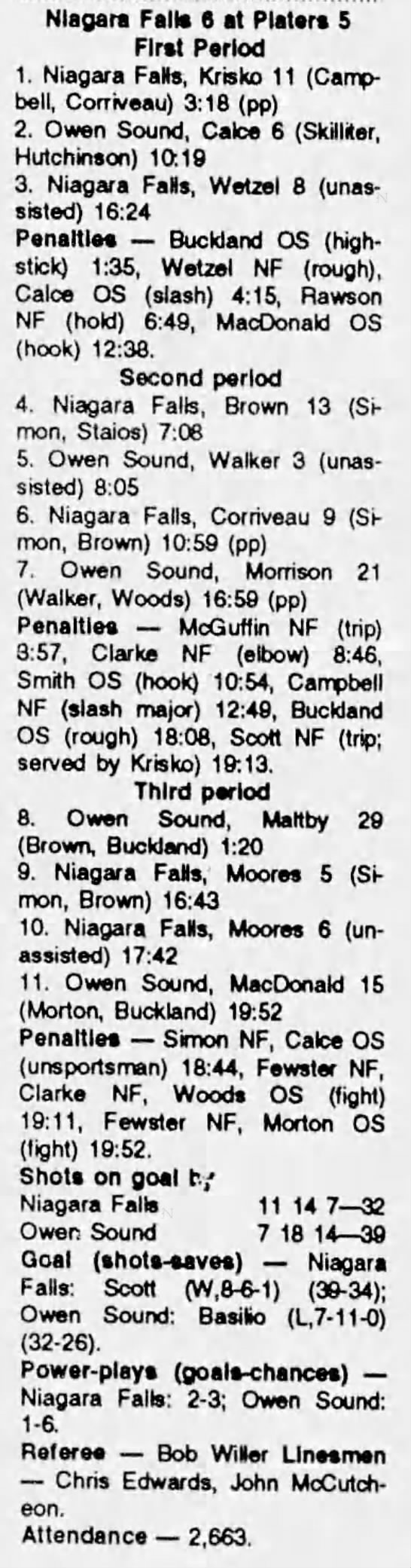 November 27 1991- Niagara Falls @ Owen Sound