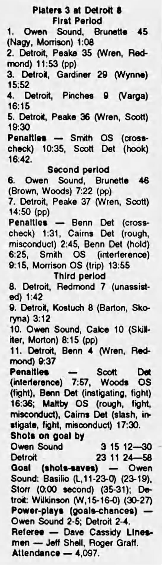 November 6 1991- Detroit @ Owen Sound