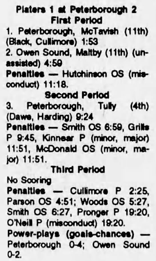 September 28 1991- Peterborough @ Owen Sound