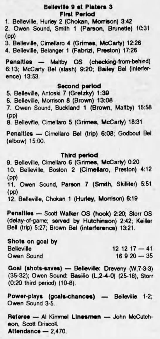 October 26 1991- Belleville @ Owen Sound