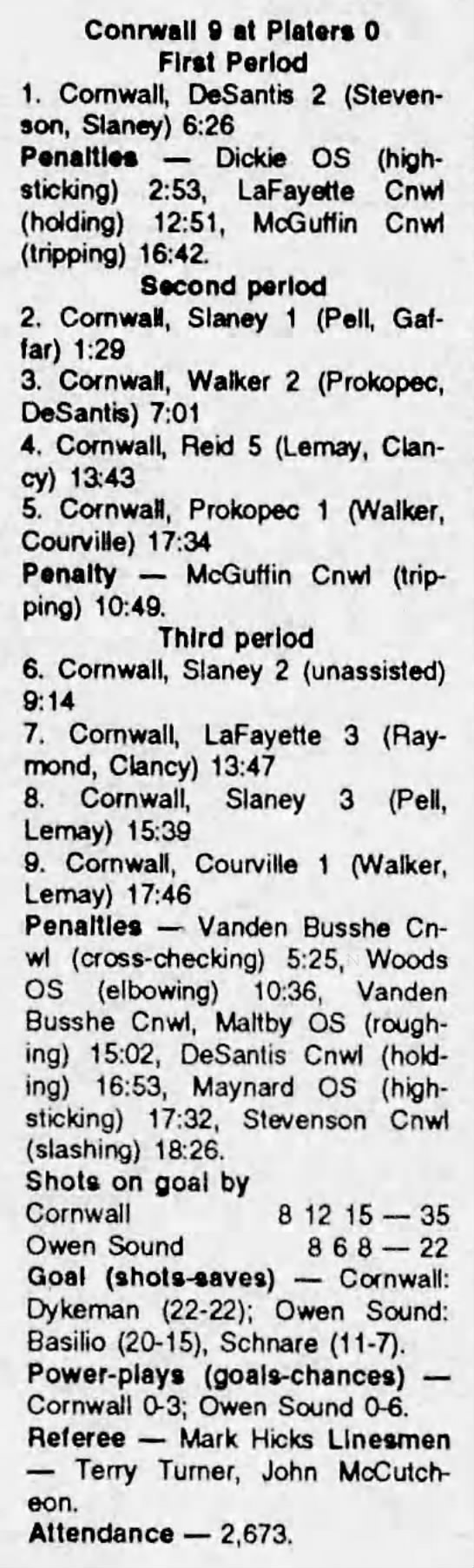 February 13 1992- Owen Sound @ Cornwall
