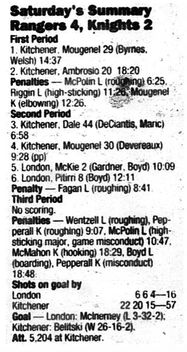 November 12 1995- Kitchener @ London