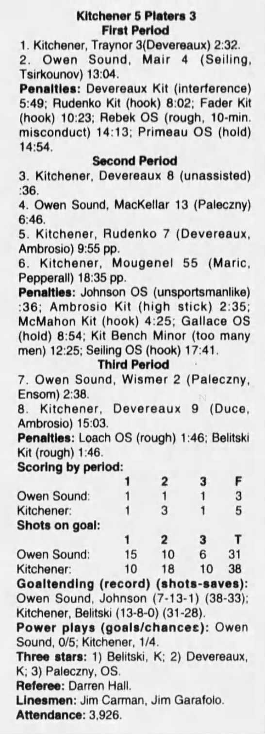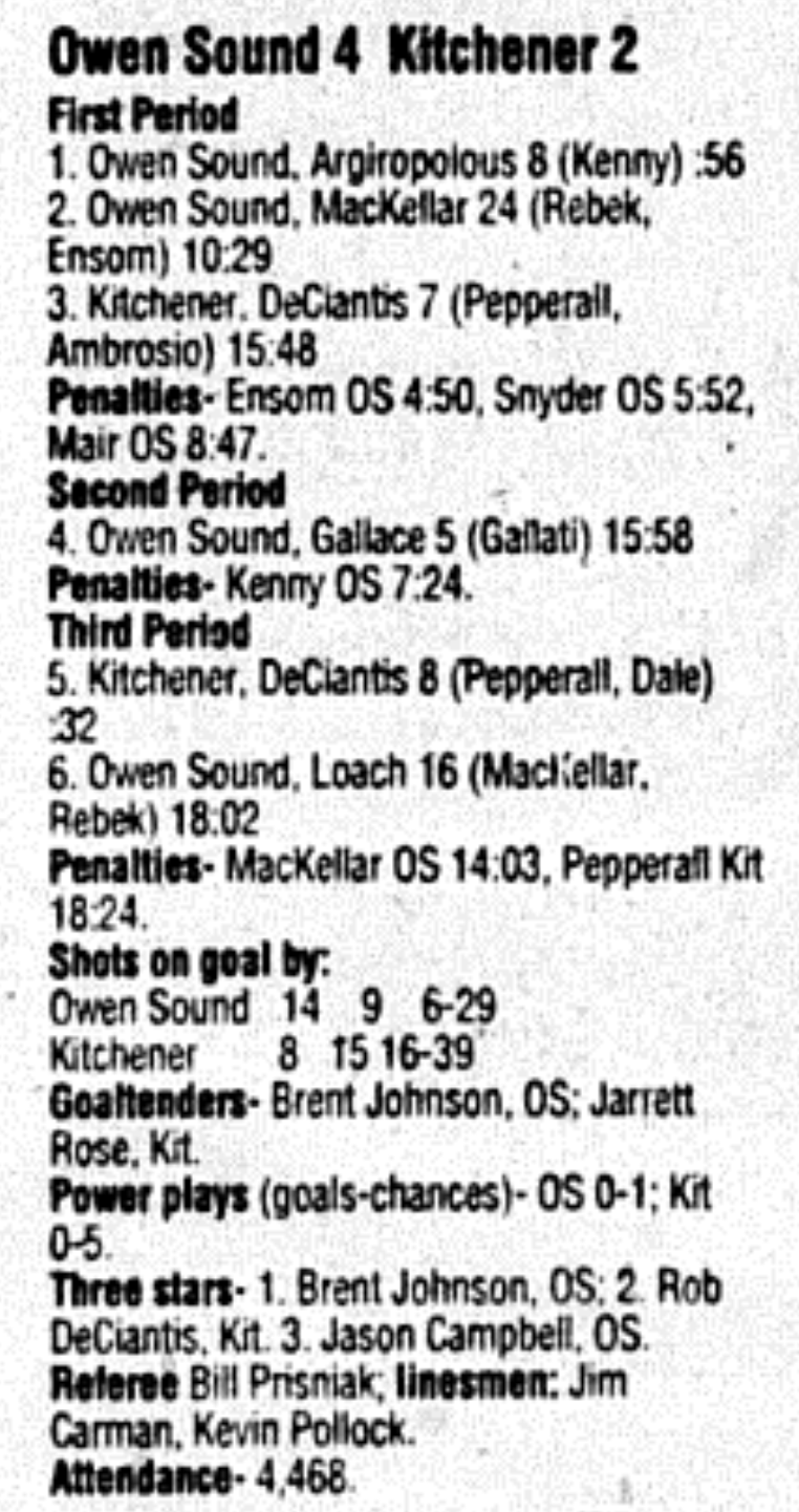 December 8 1995- Owen Sound @ Kitchener