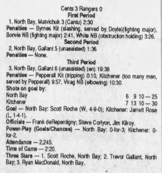 November 2 1995- Kitchener @ North Bay