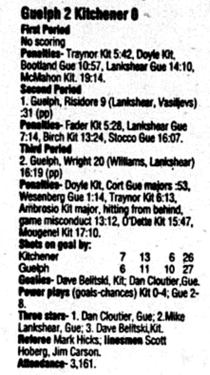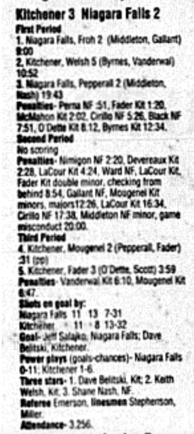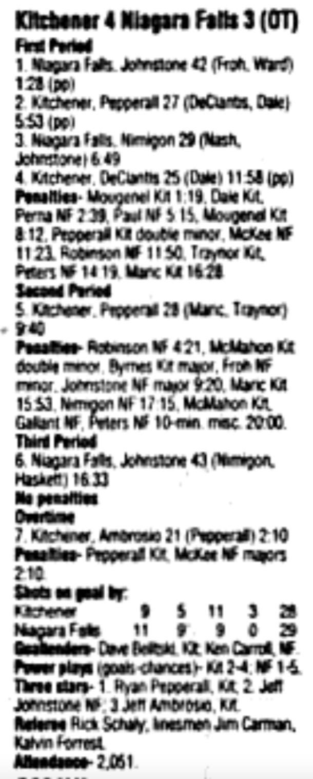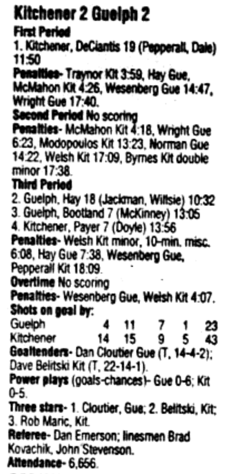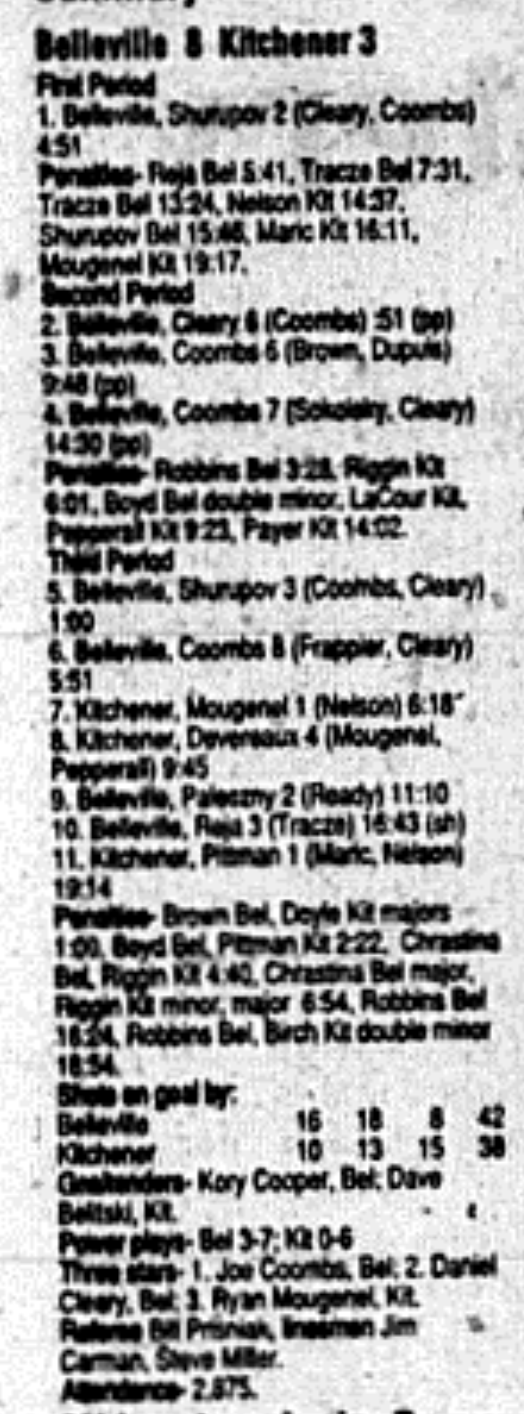 December 16 1995- Kitchener @ Belleville (4-3 Kitchener)