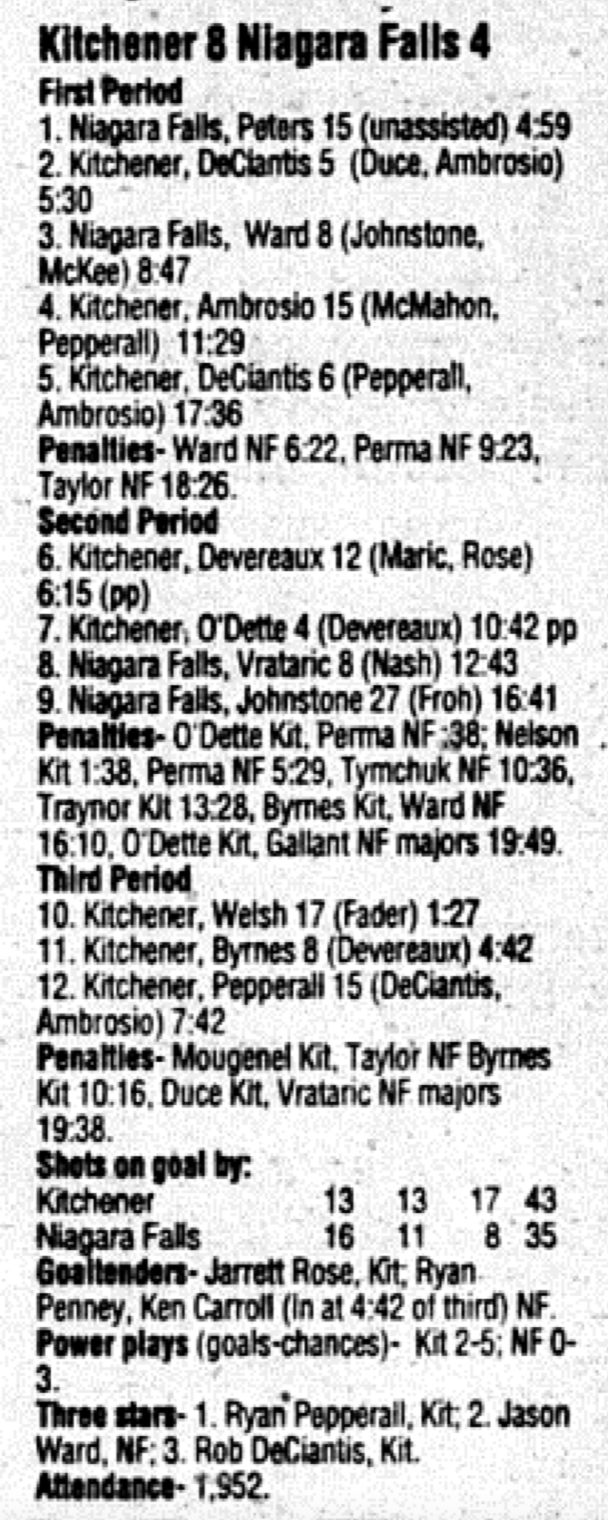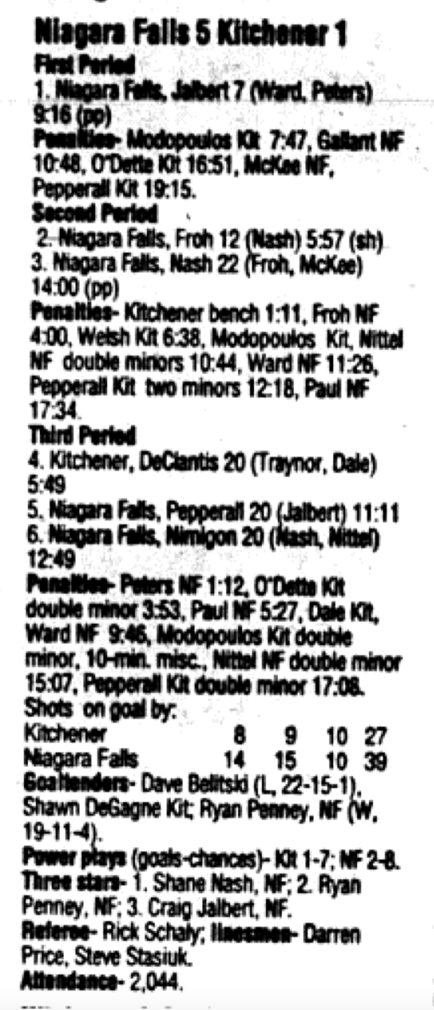 March 9 1996- Kitchener @ Niagara Falls