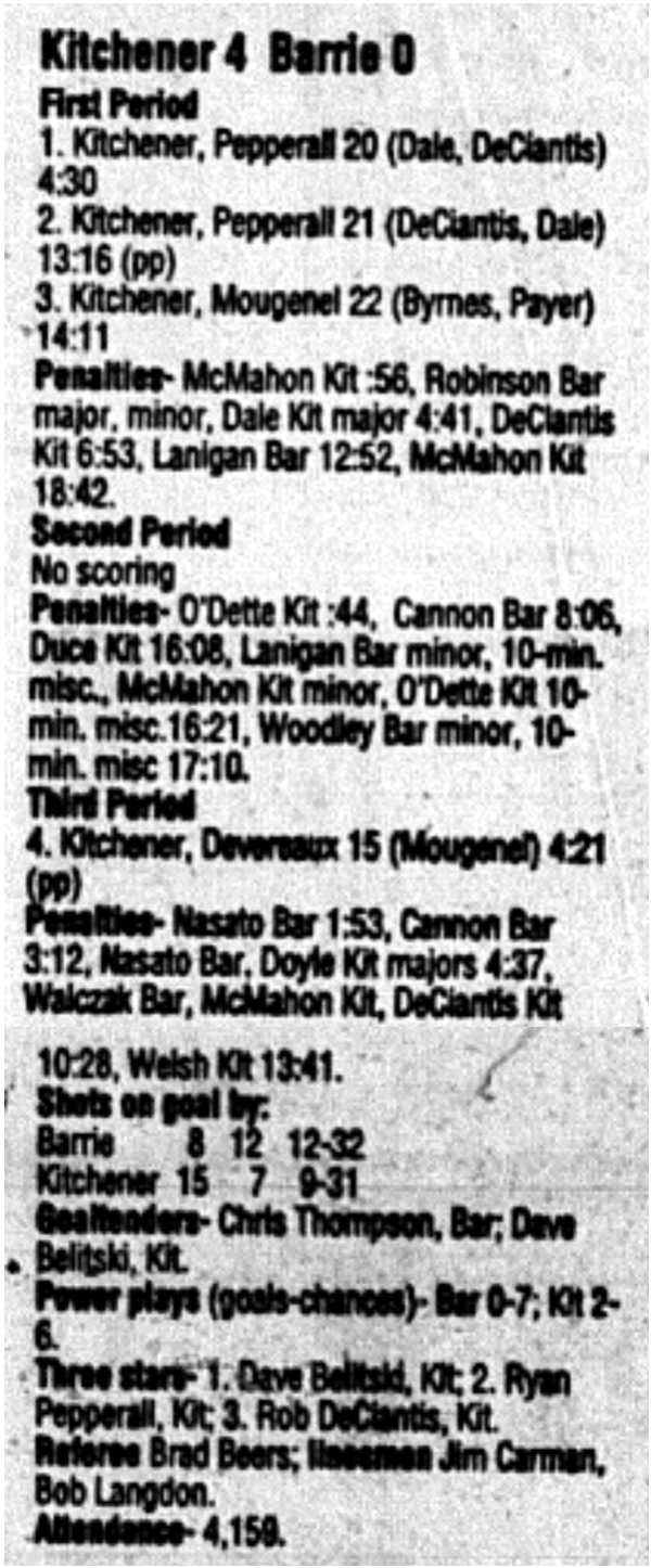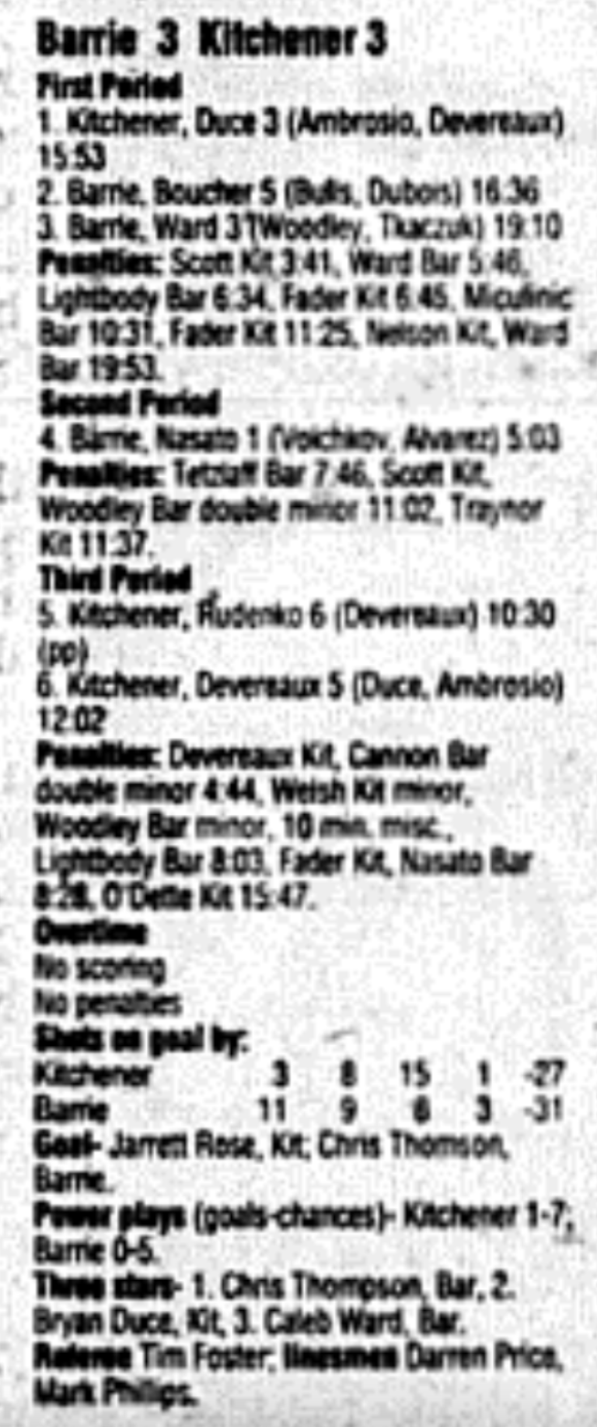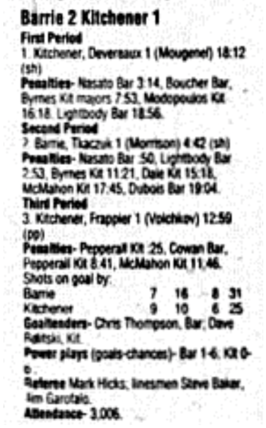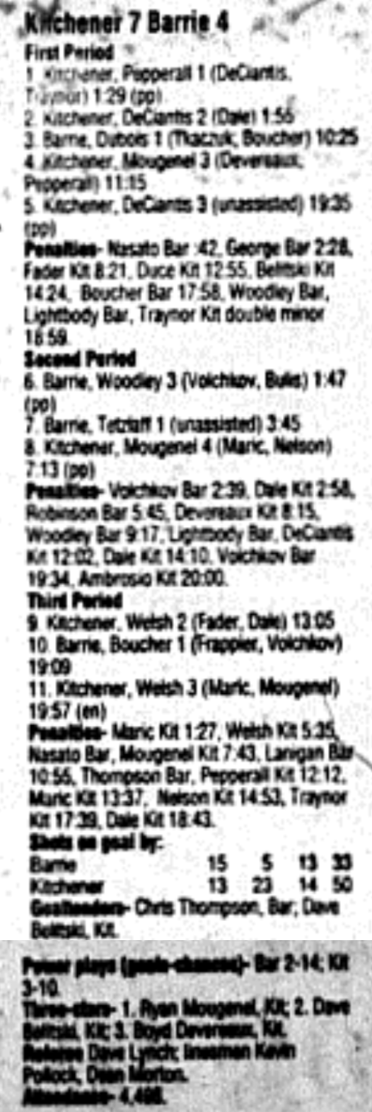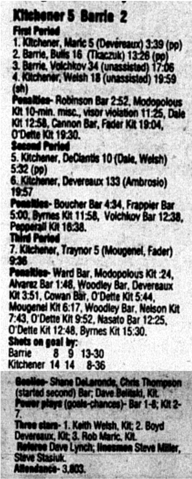 December 3 1995- Kitchener @ Barrie (Barrie Arena)