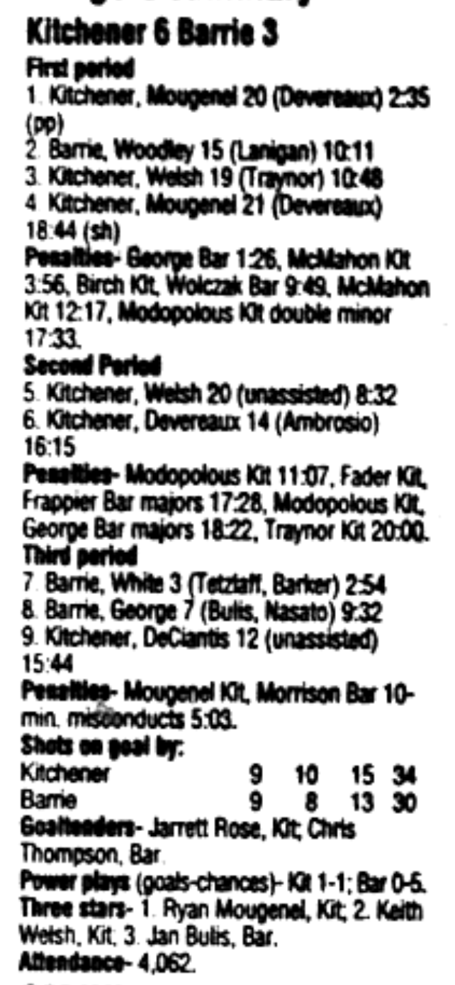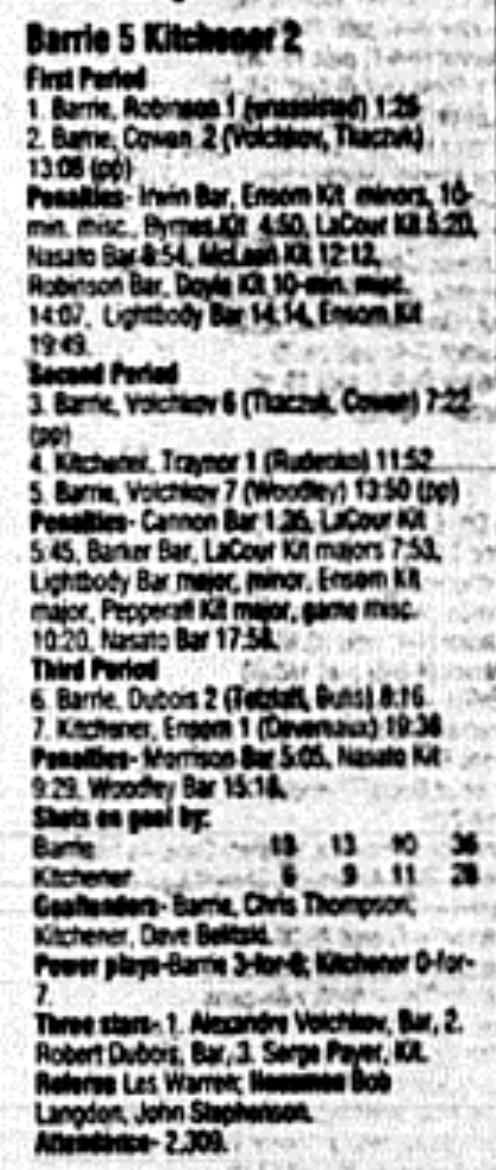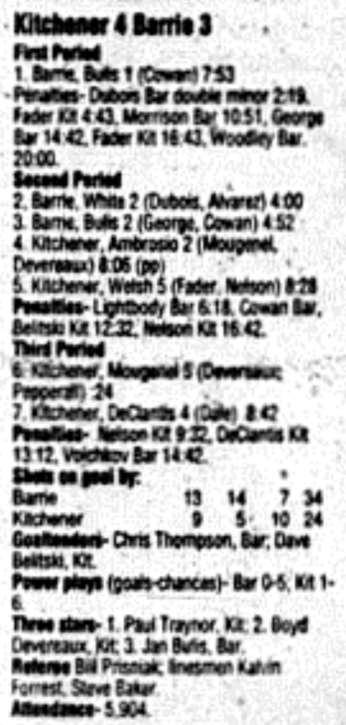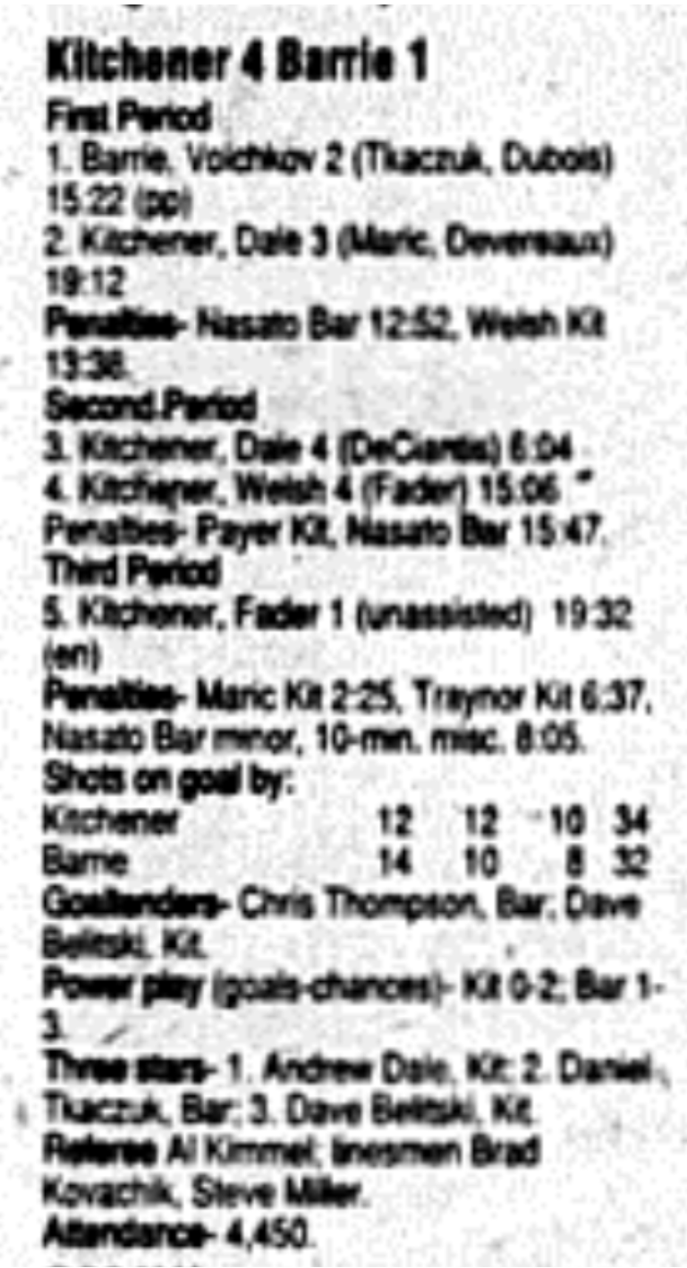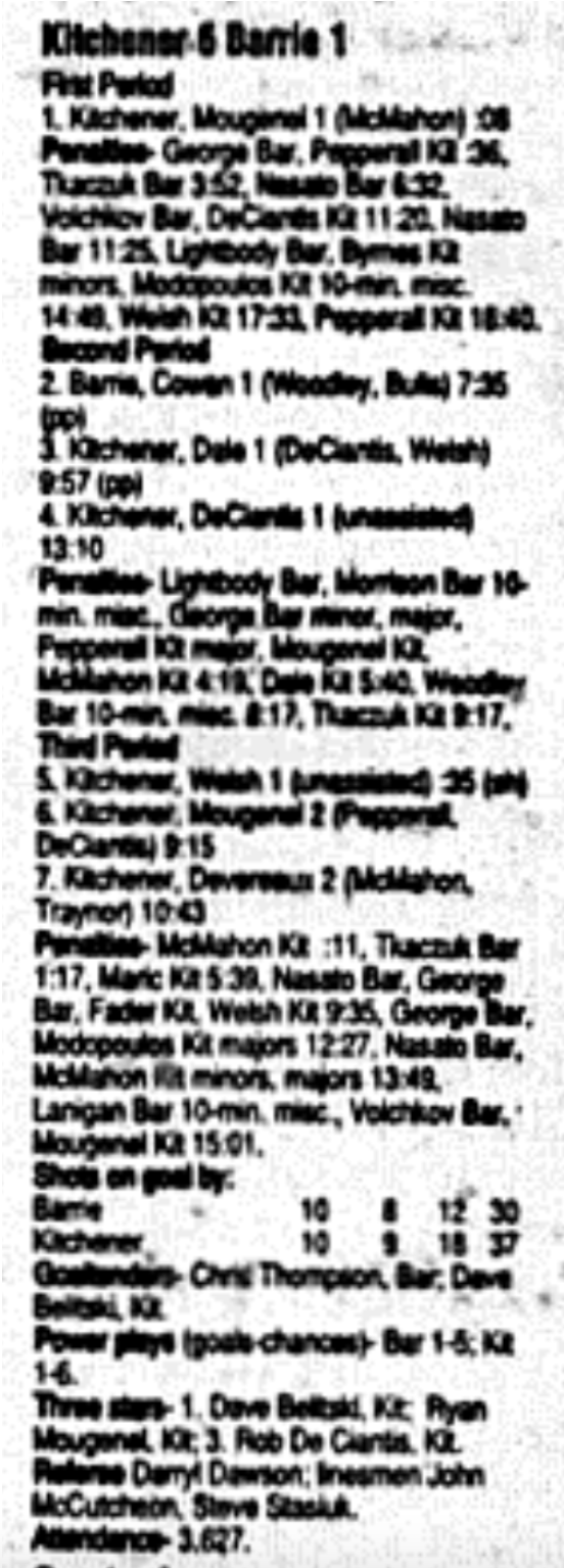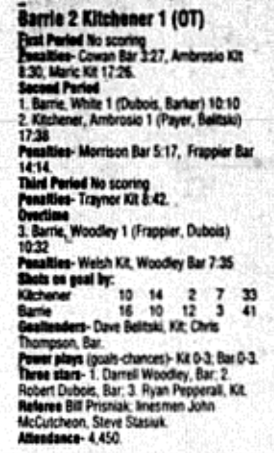 December 3 1995- Kitchener @ Barrie (Barrie Arena)