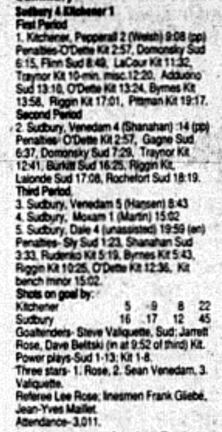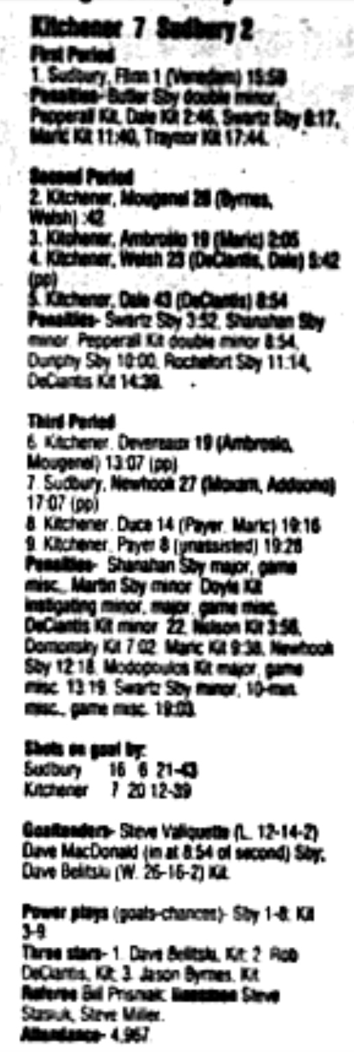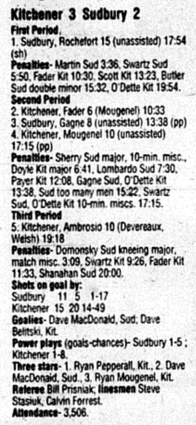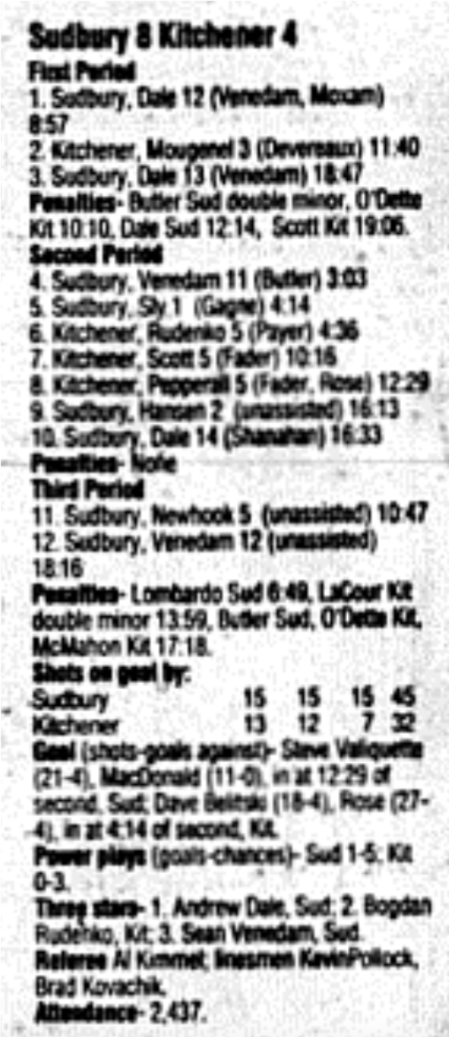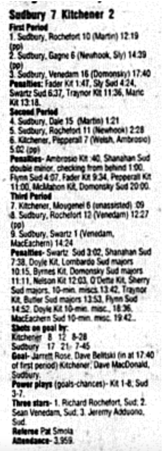 February 27 1996- Kitchener @ Sudbury (4-4 Tie)