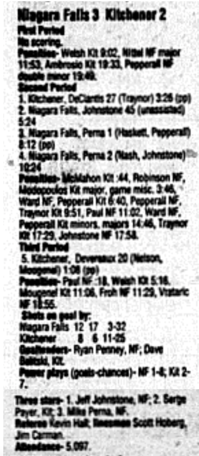 January 6 1996- Kitchener @ Niagara Falls