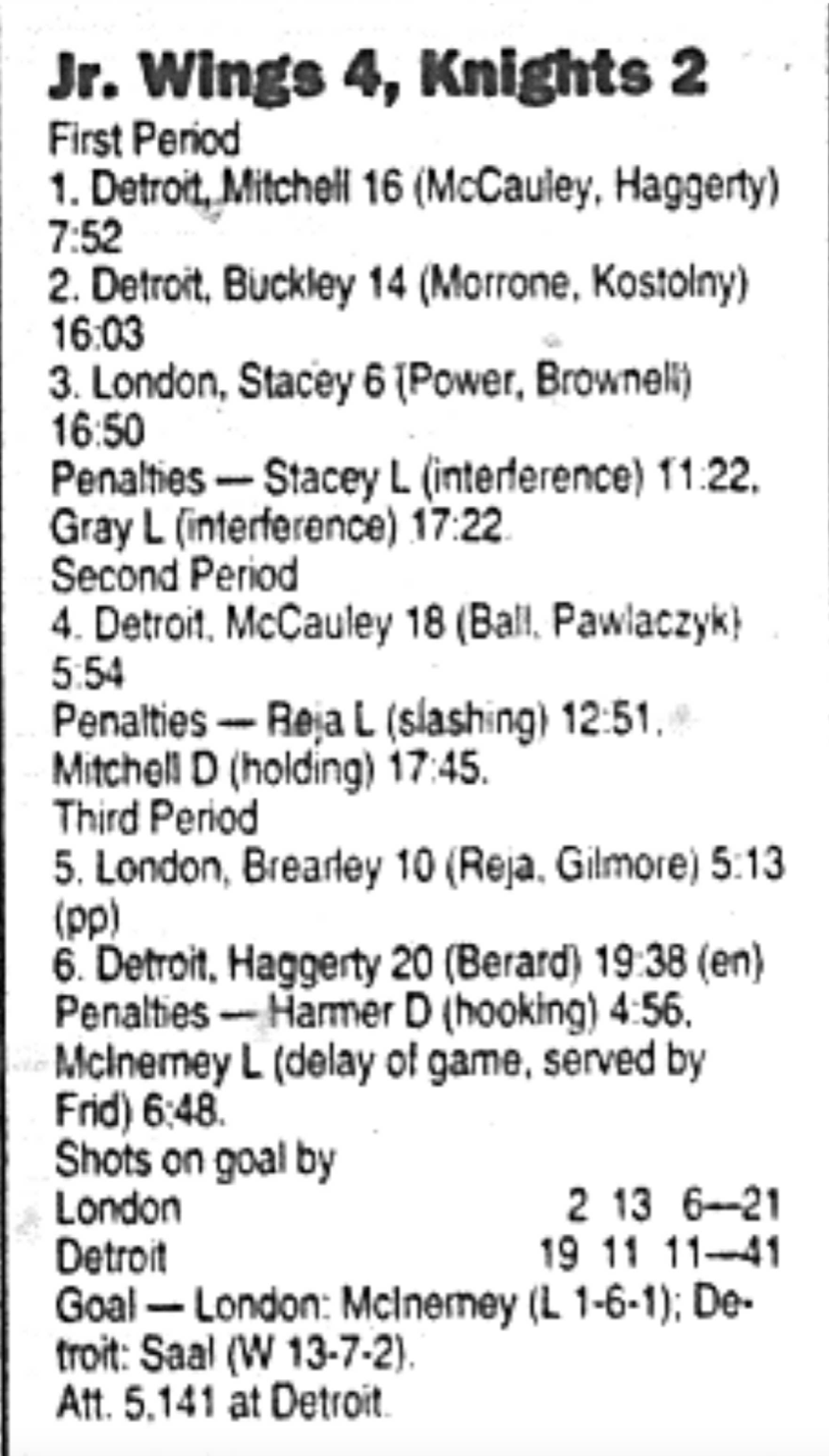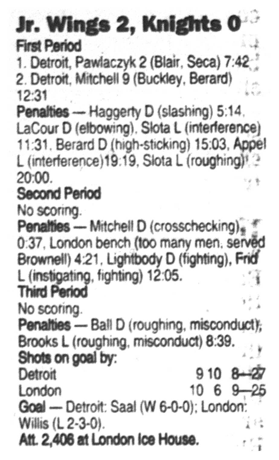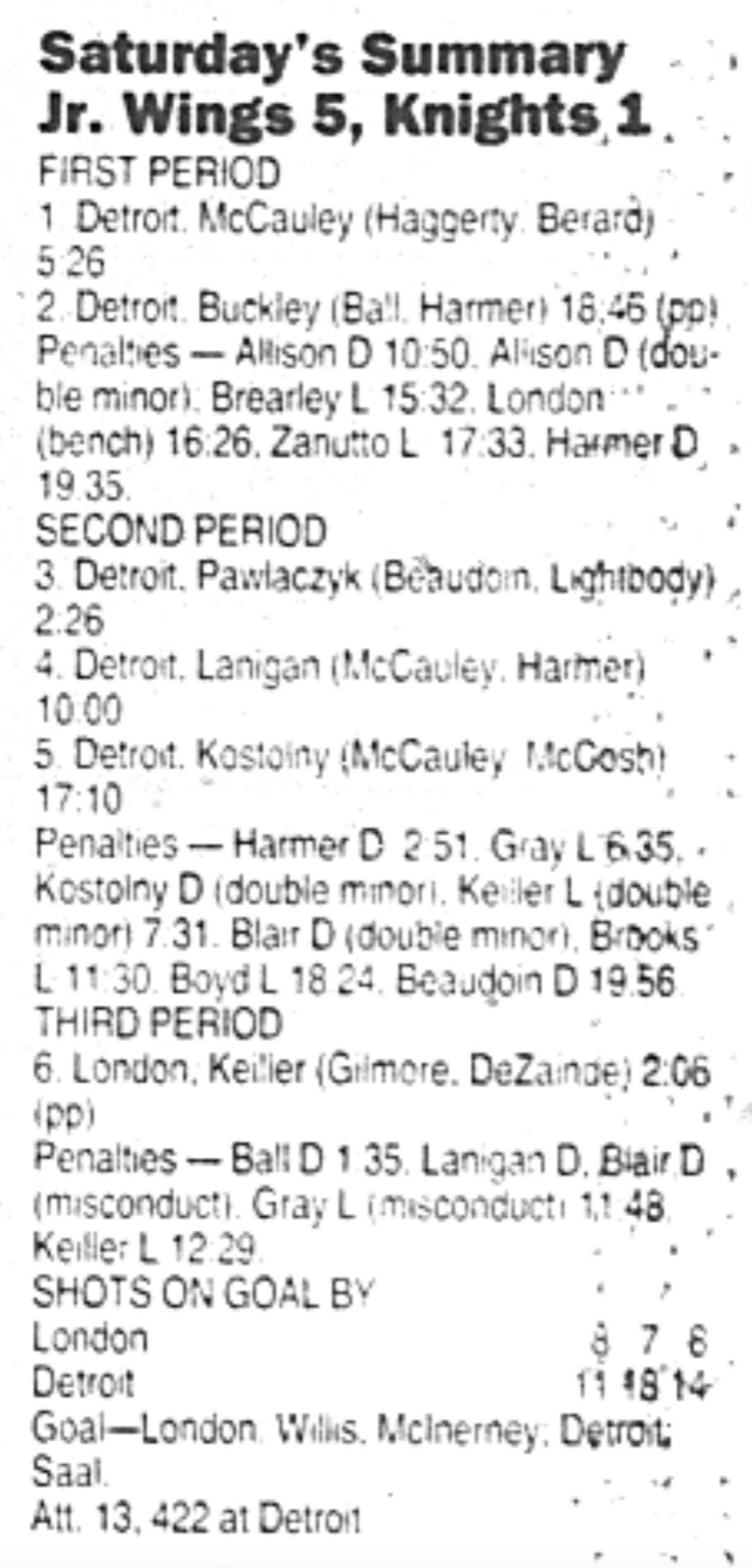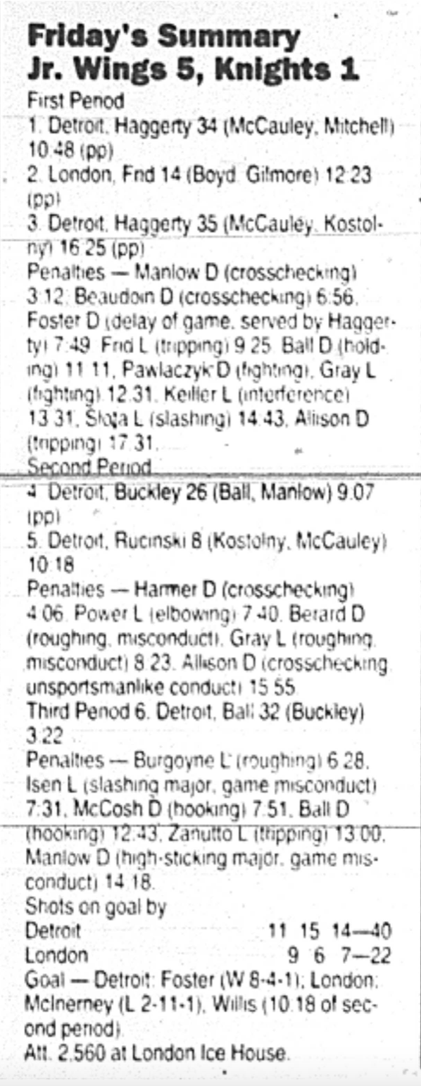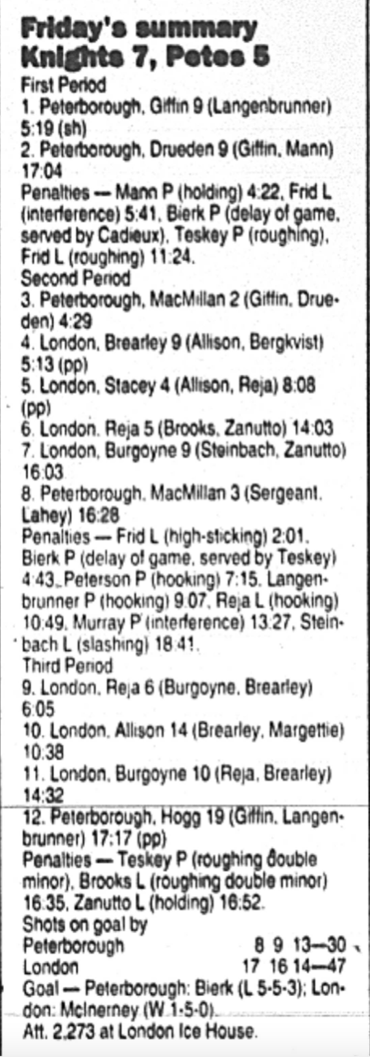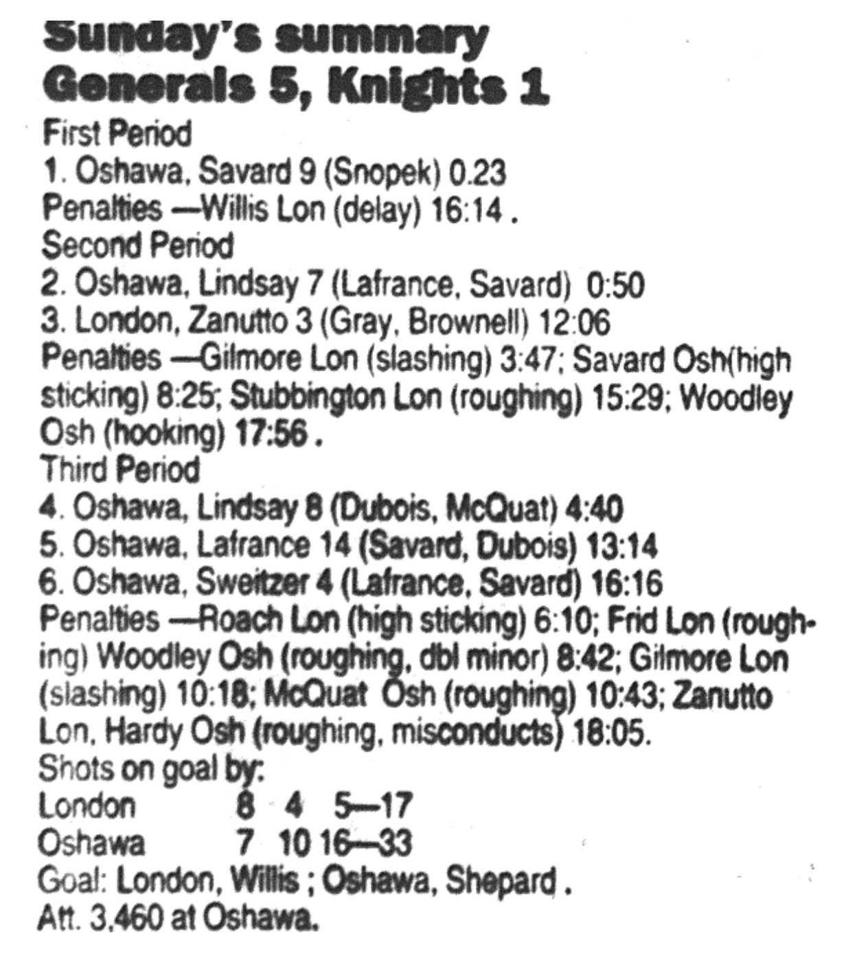 Here are the boxscores from the 1994-95 London Knights season. All boxscores from that season are here (70/70 boxscores). If you have any of the games that are missing, please send them my way.