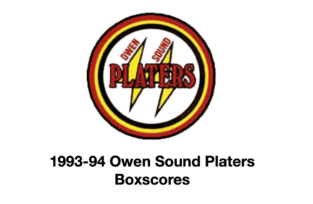 Here are the boxscores from the 1993-94 Owen Sound Platers season. Most boxscores from this season are here (74/75 boxscores). If you have any of the games that are missing, please send them my way.