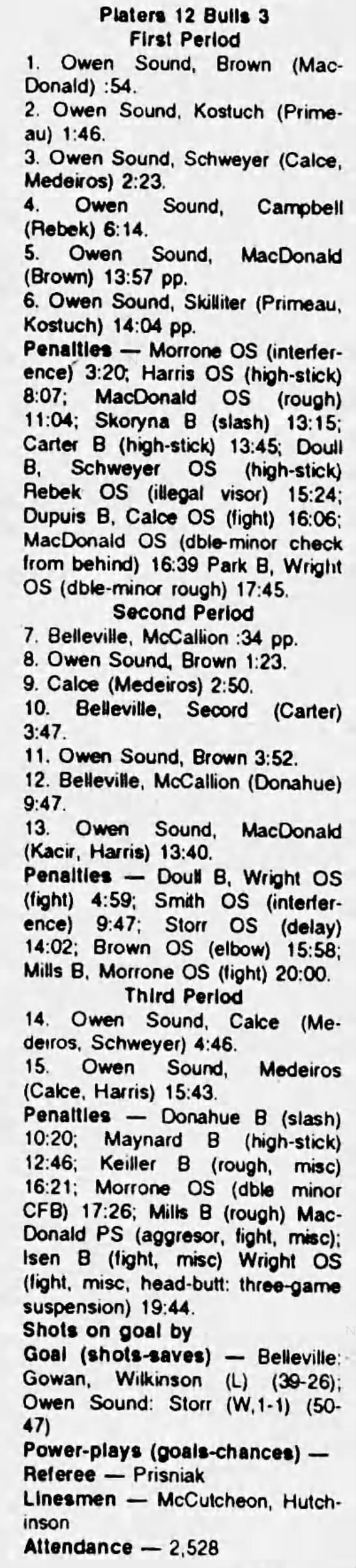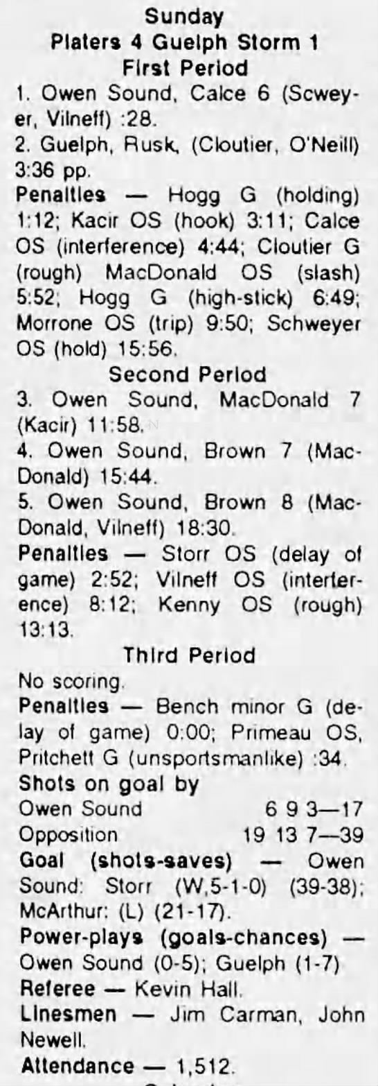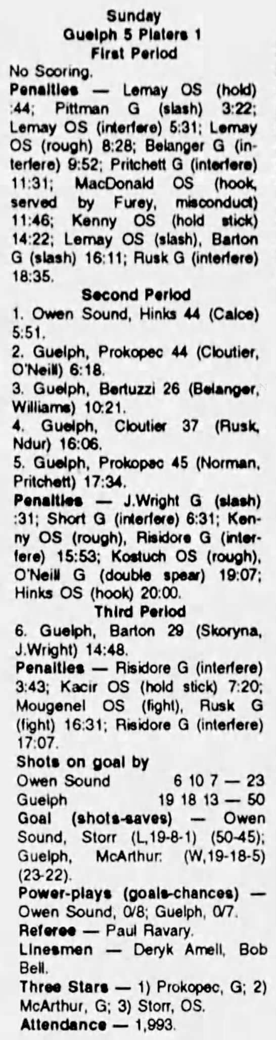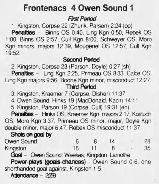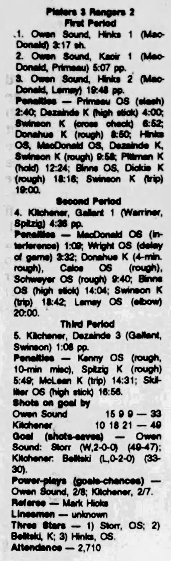 October 2 1993- Belleville @ Owen Sound