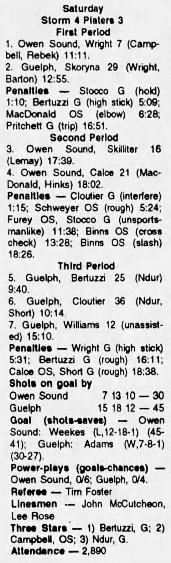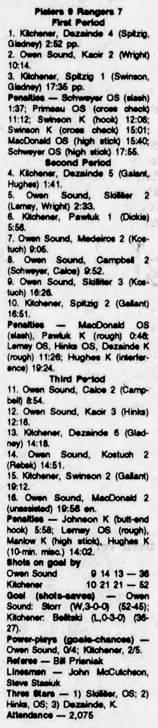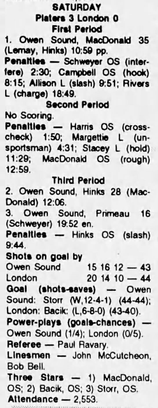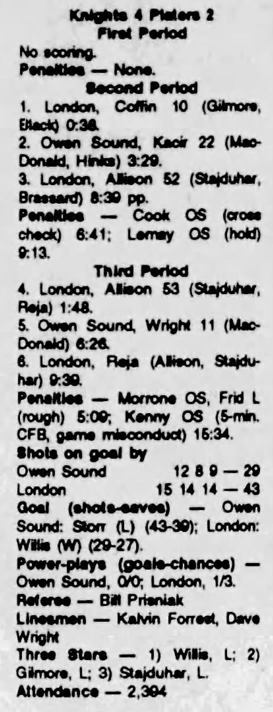 October 2 1993- Belleville @ Owen Sound
