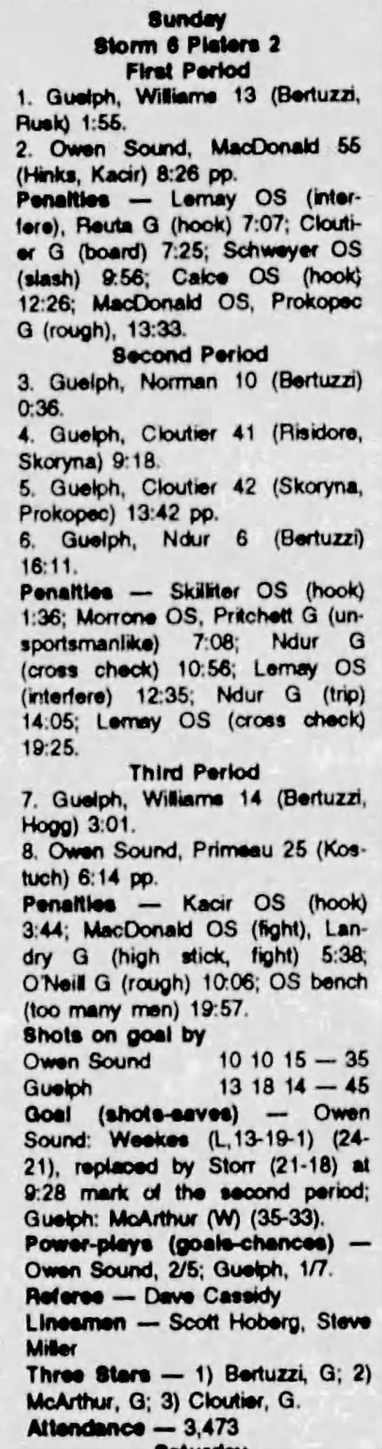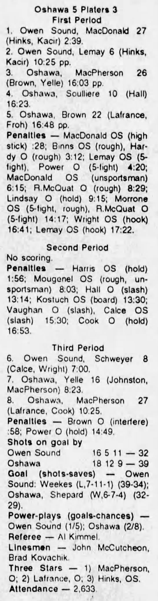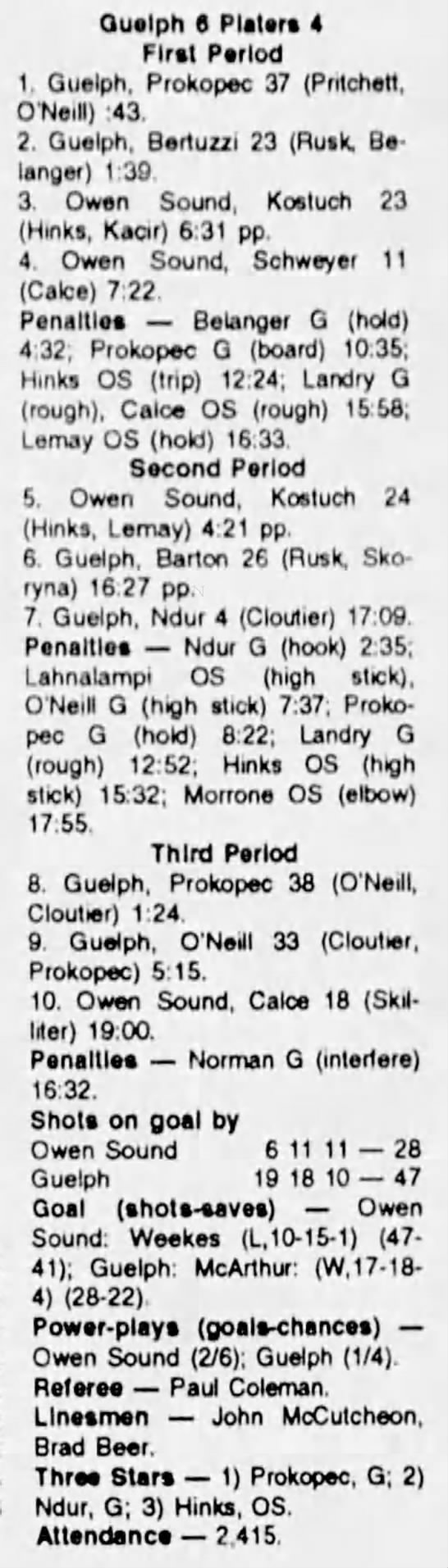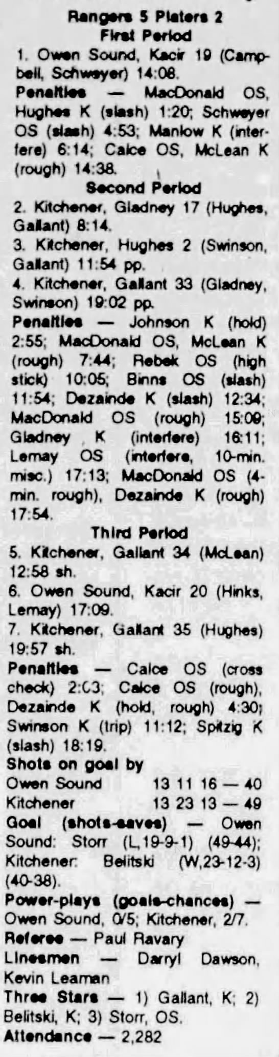 October 2 1993- Belleville @ Owen Sound
