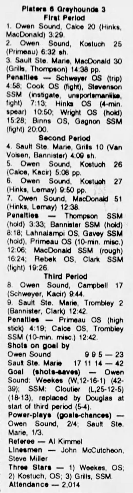 December 4 1993- North Bay @ Owen Sound