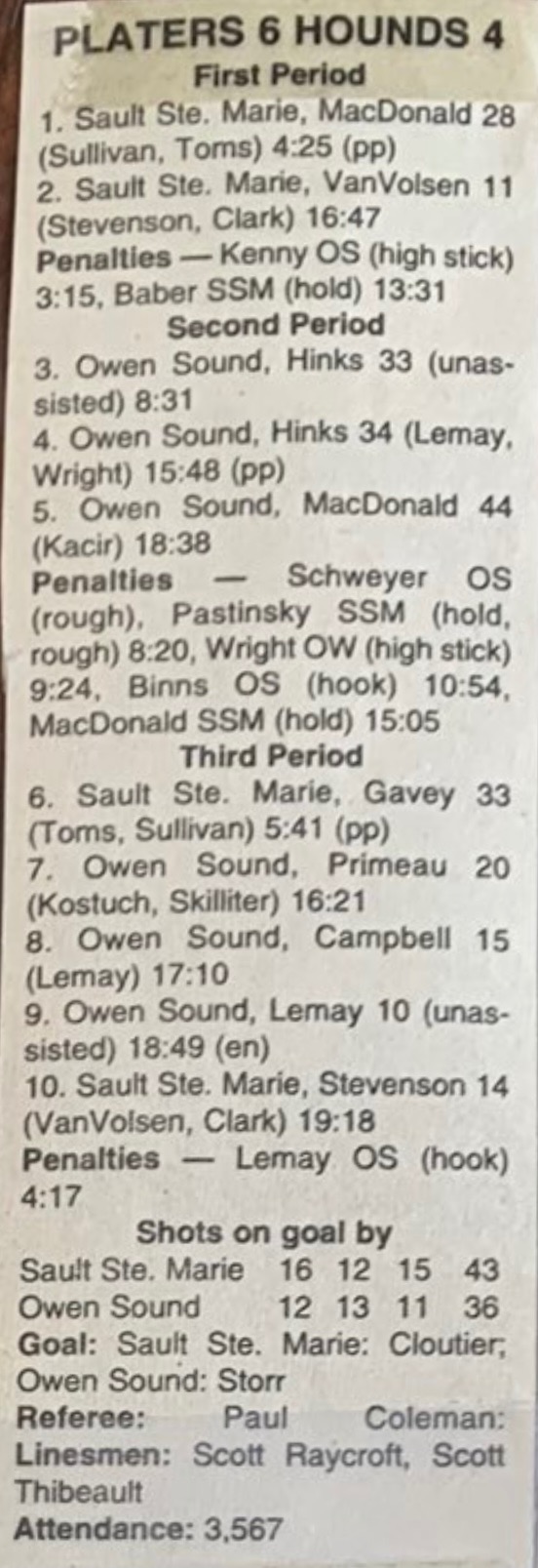 December 18 1993- Owen Sound @ Belleville (4-3 Owen Sound)