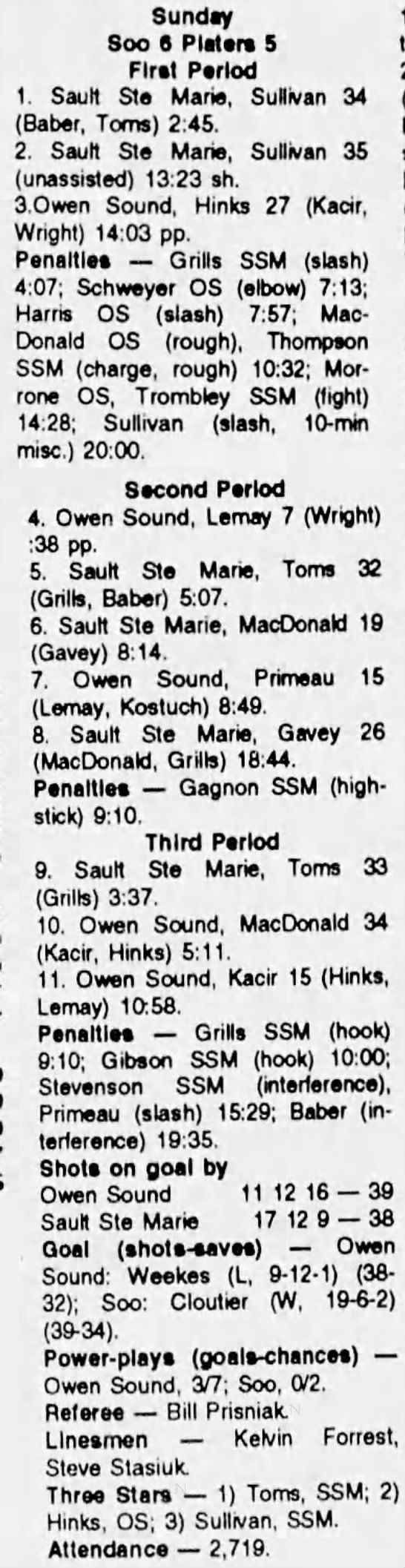 October 30 1993- Owen Sound @ Soo