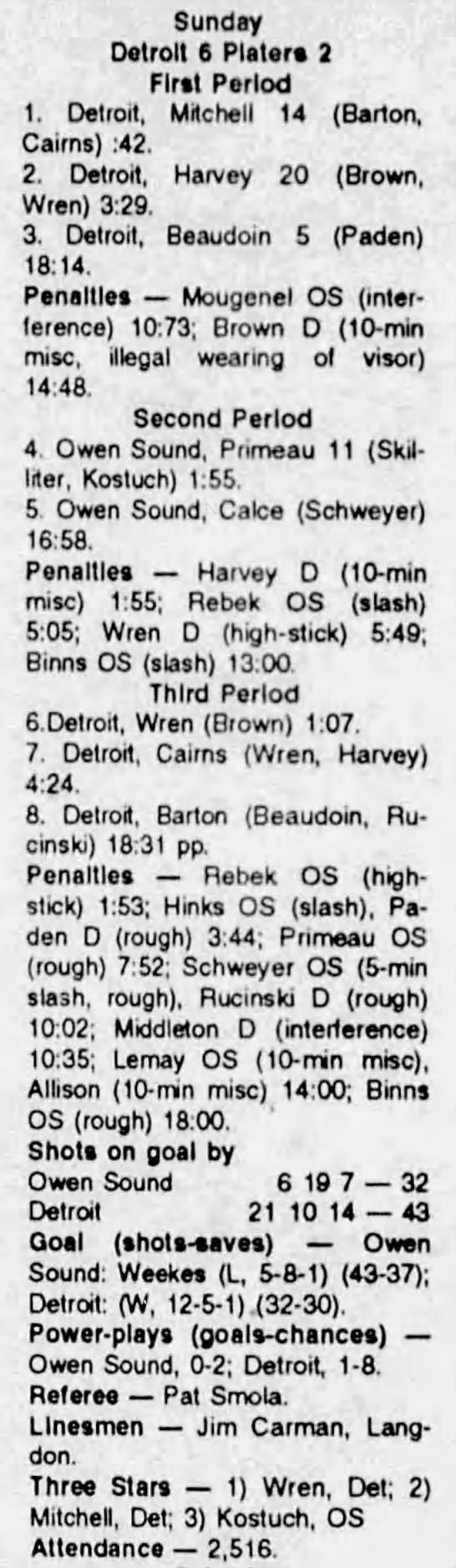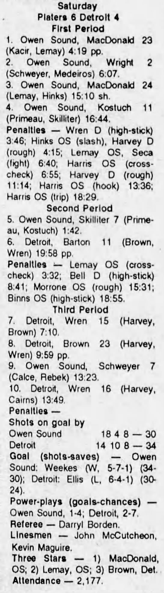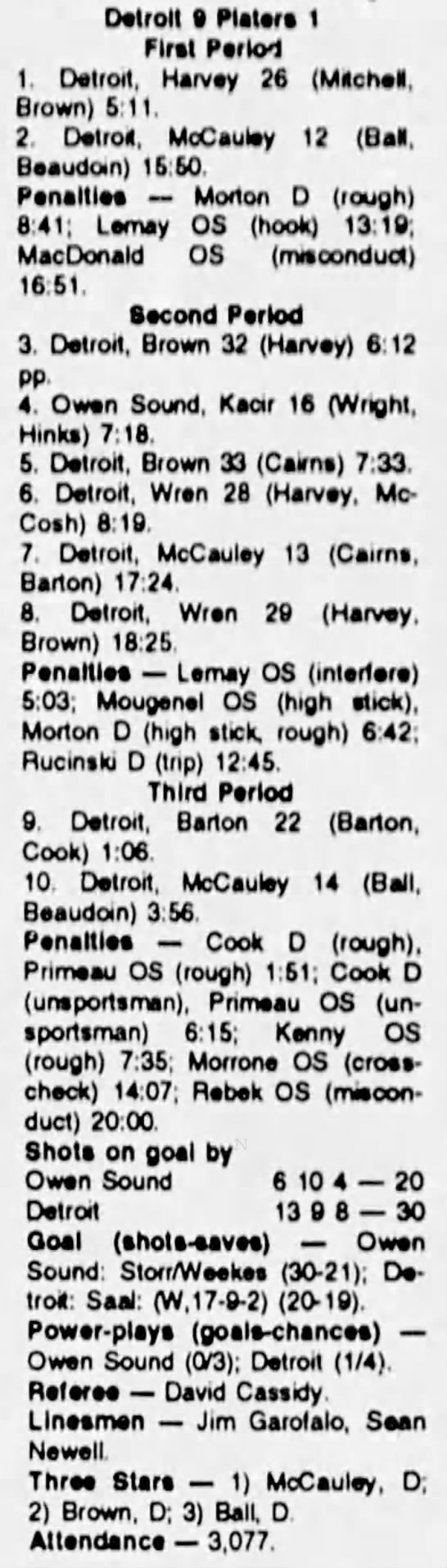 December 11 1993- Detroit @ Owen Sound