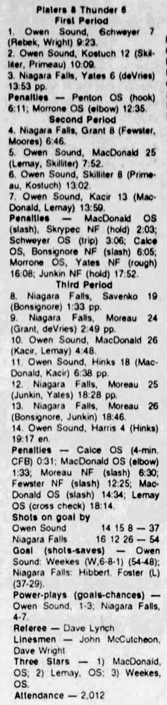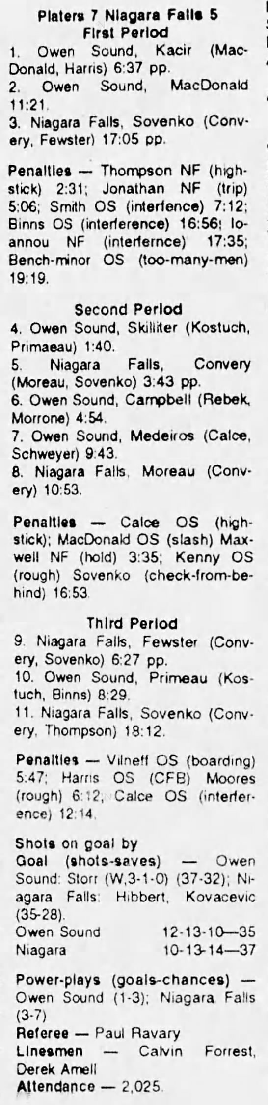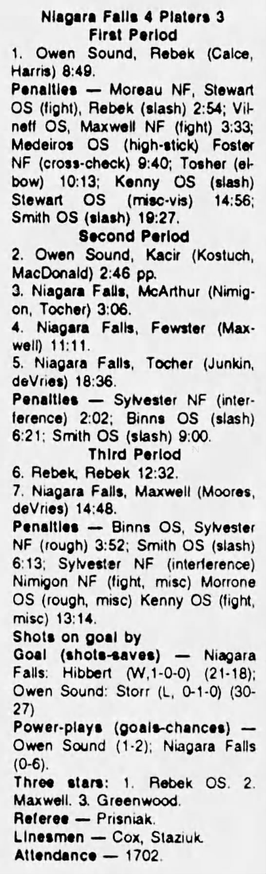 December 9 1993- Owen Sound @ Niagara Falls