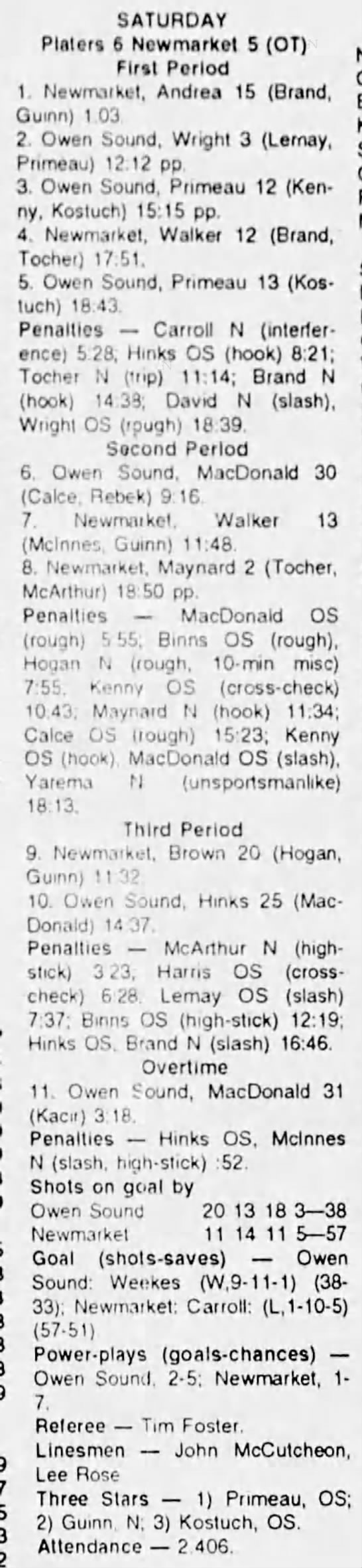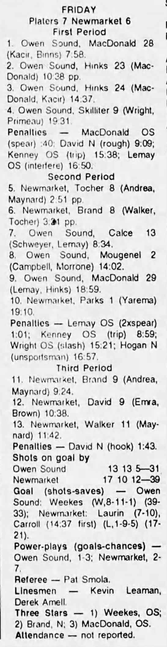 January 1 1994- Newmarket @ Owen Sound