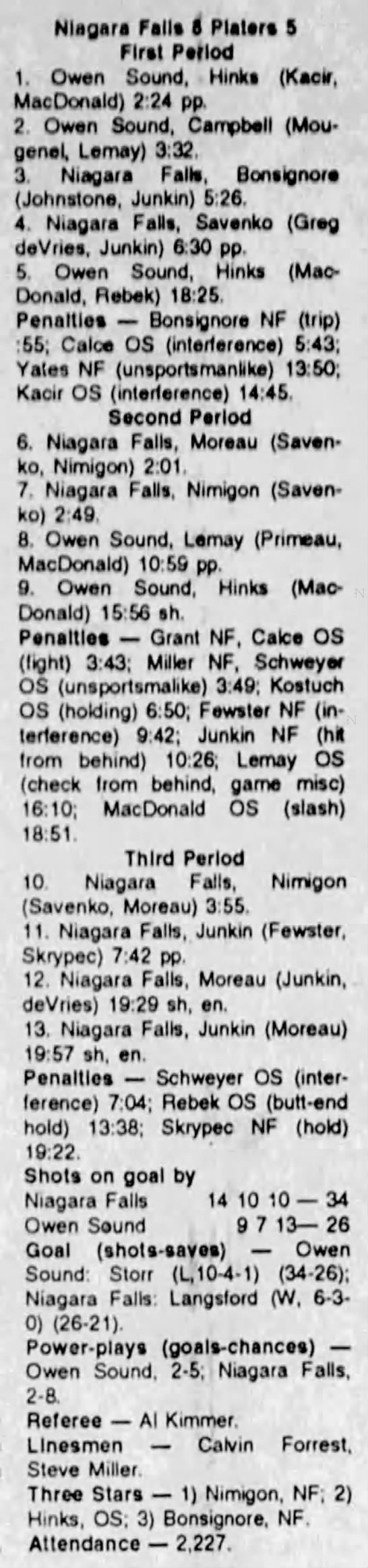 September 23 1993- Owen Sound @ Niagara Falls