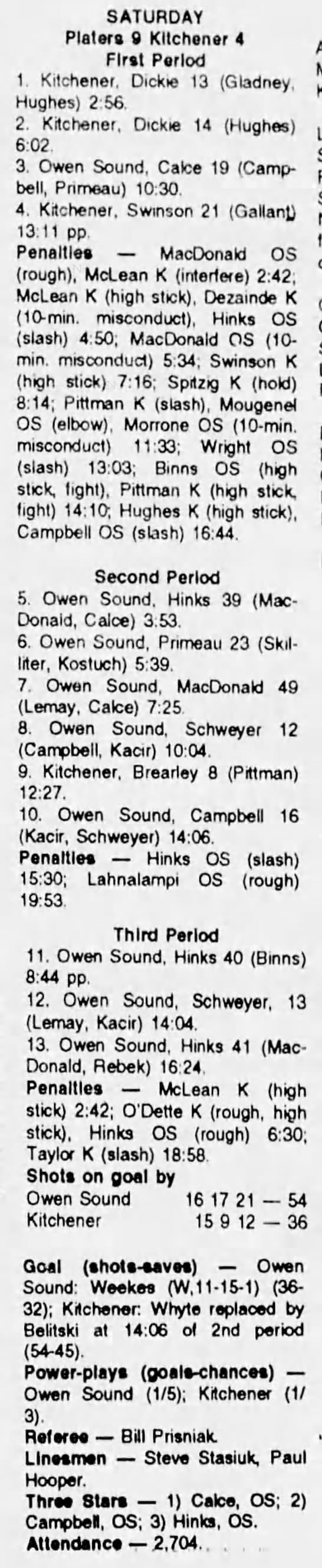 October 8 1993- Owen Sound @ Kitchener