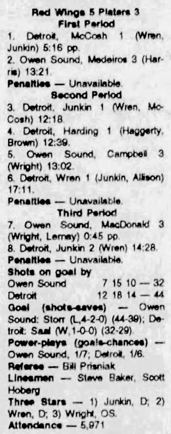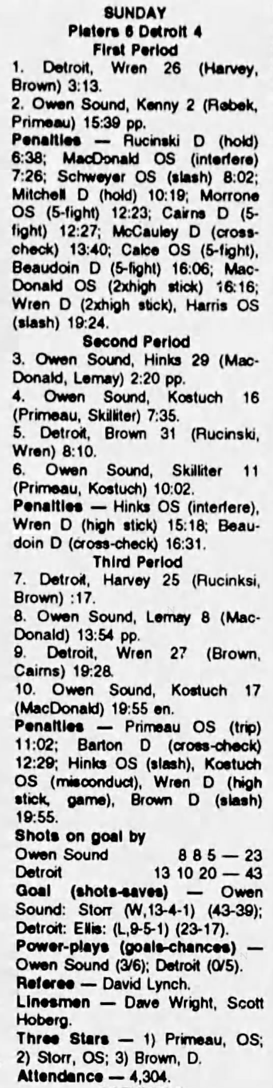 September 25 1993- Detroit @ Owen Sound