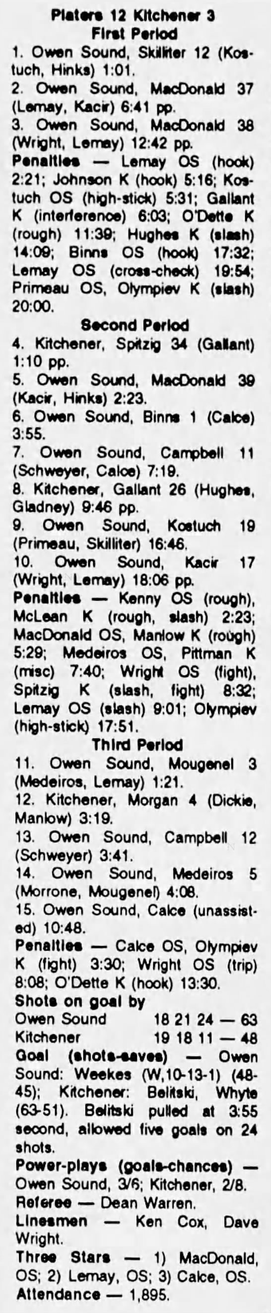 Game 3- March 24 1994- Kitchener @ Owen Sound