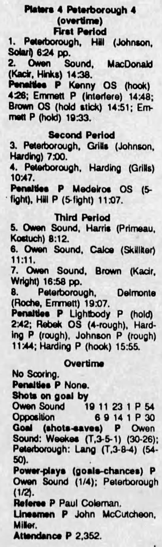 November 20 1993- Peterborough @ Owen Sound