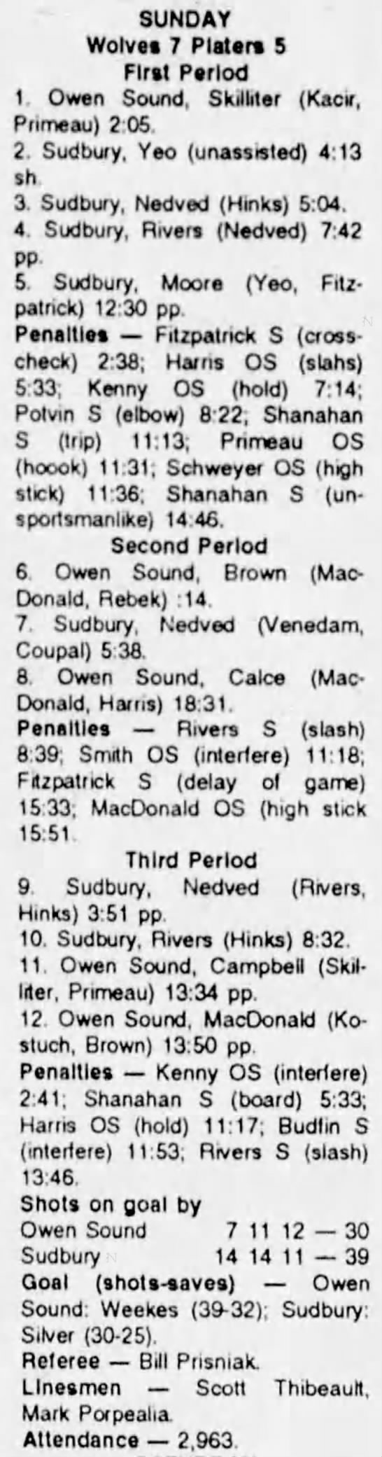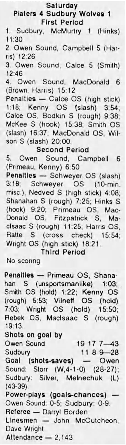 October 16 1993- Sudbury @ Owen Sound